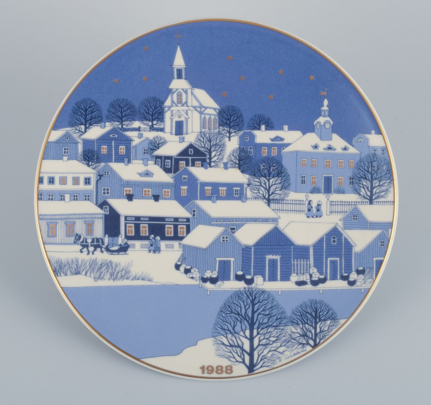 Raija Uosikkinon for Arabia, Finland, et set på seks juleplatter i porcelæn. Finske julelandskaber.
