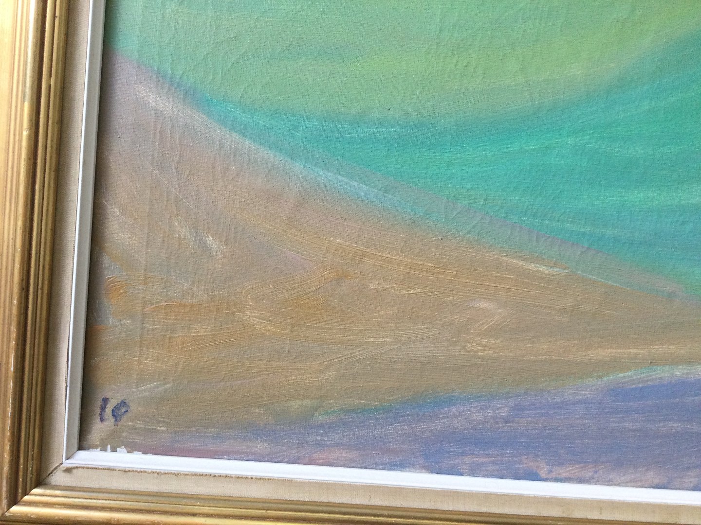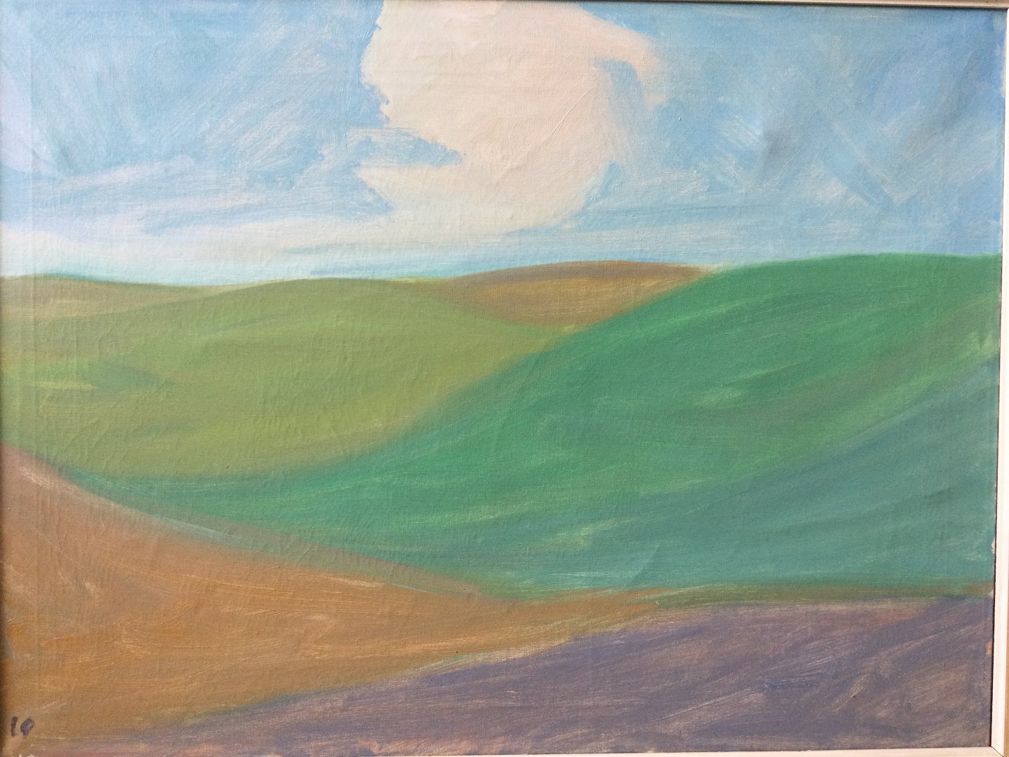 Maleri af Carl Østerbye - Bakket landskab med drivenden skyer.