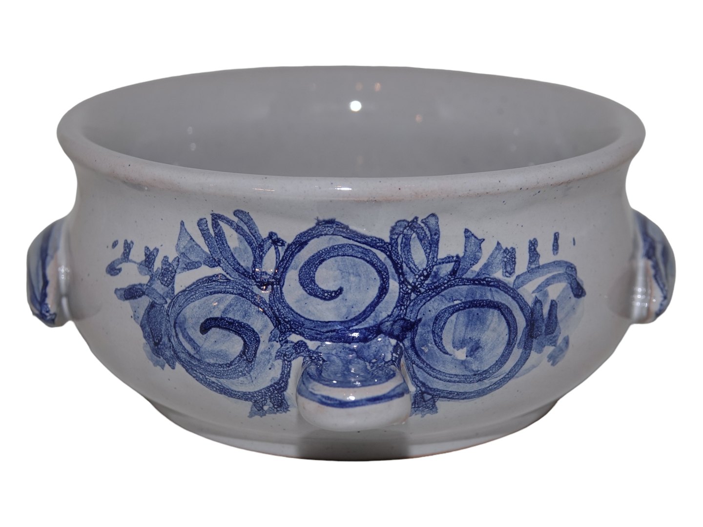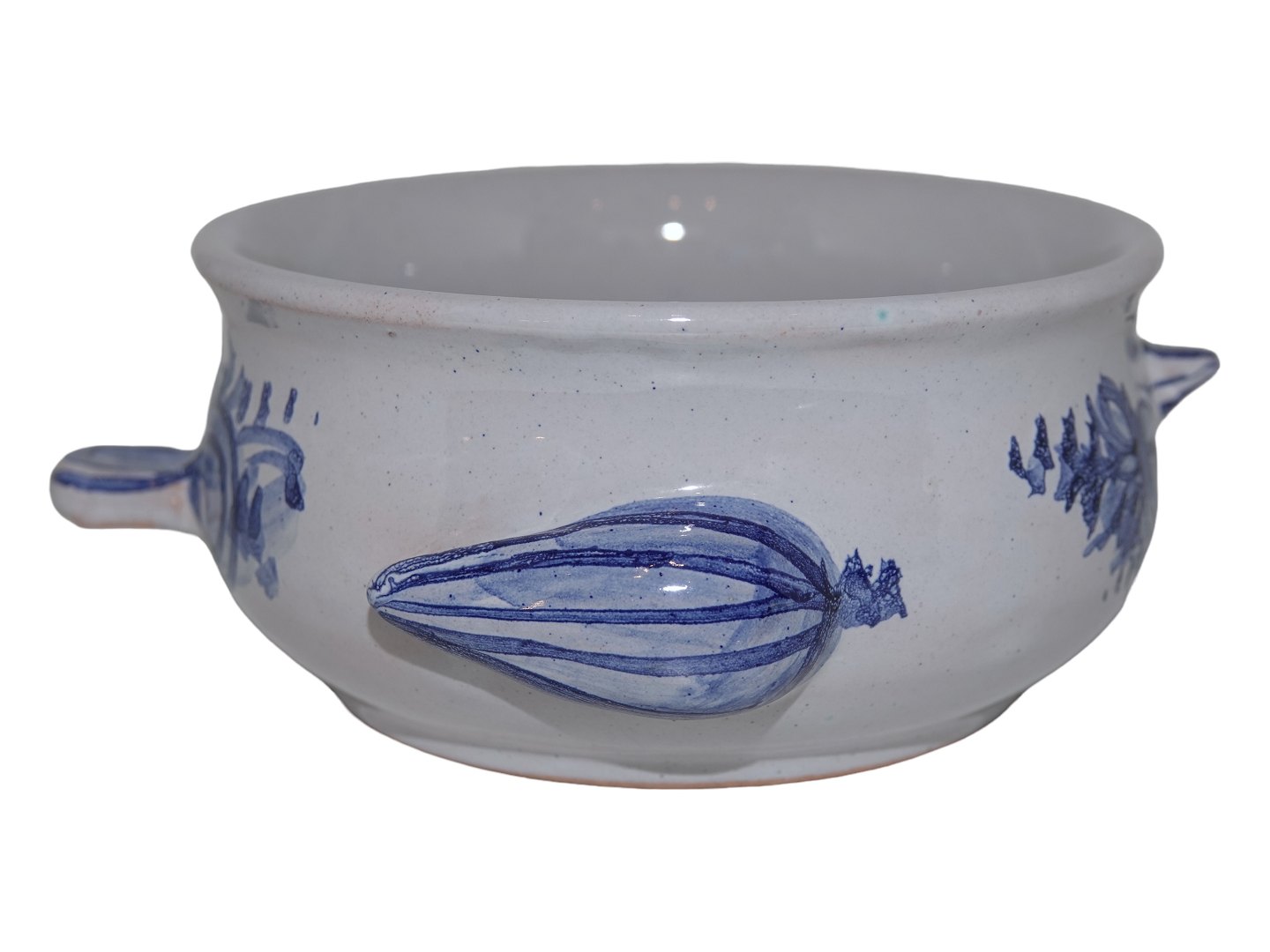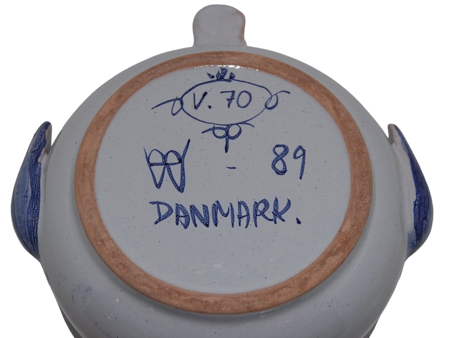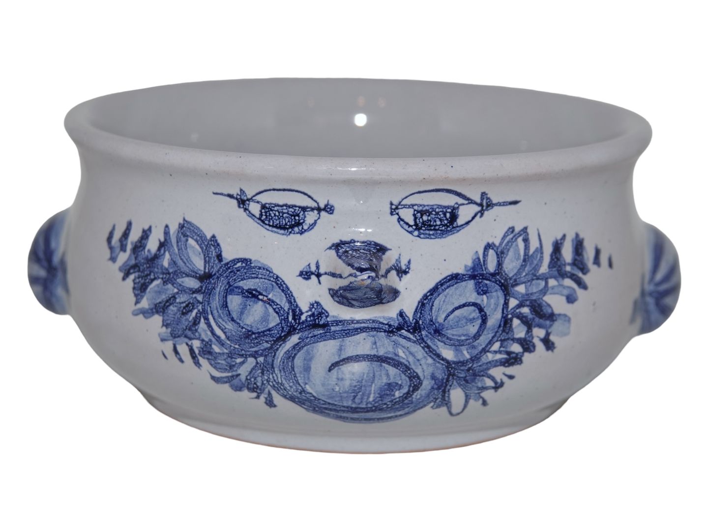 Bjørn Wiinblad keramik, skål i form af fugl med næb, vinger og hale. Denne er med blå dekoration.