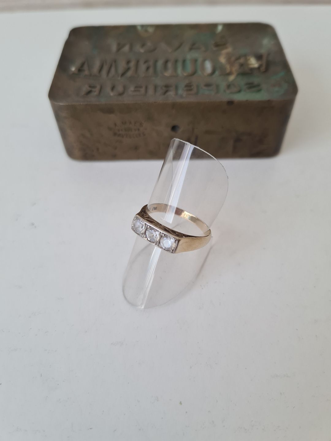 Vintage ring i 14 kt guld med tre klare smykkesten