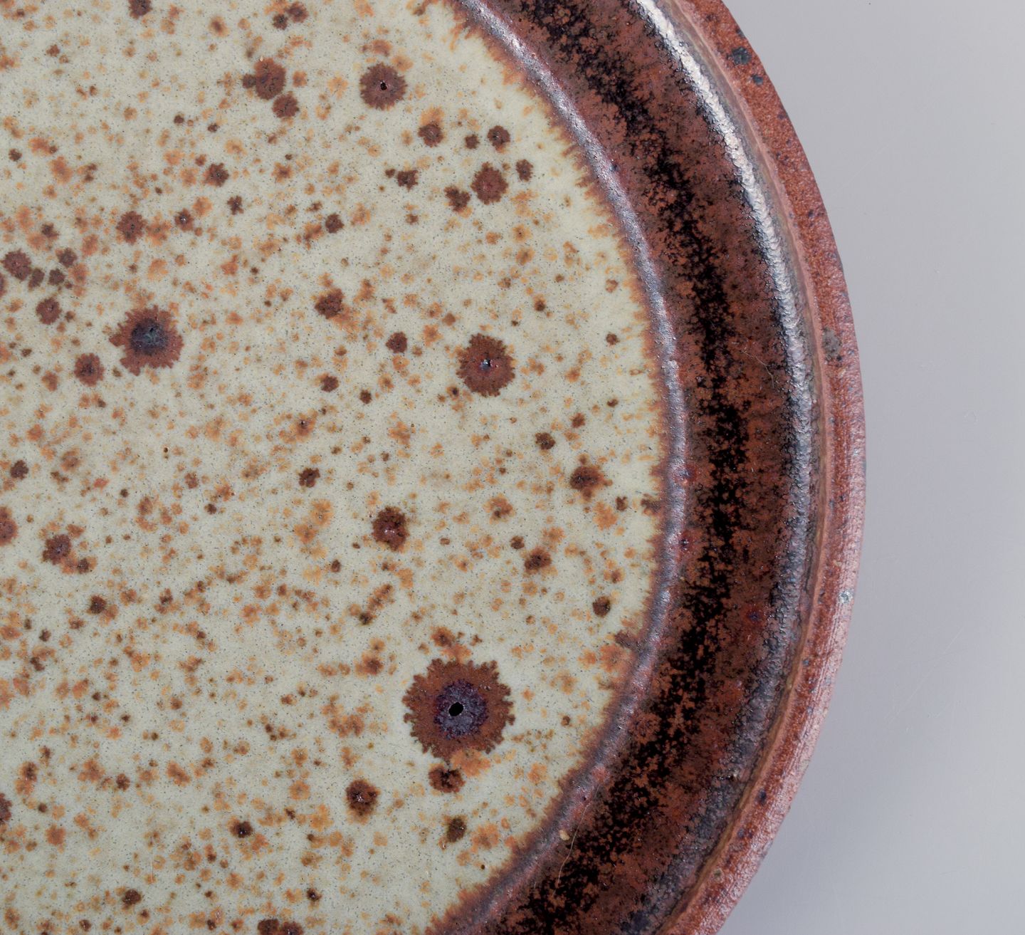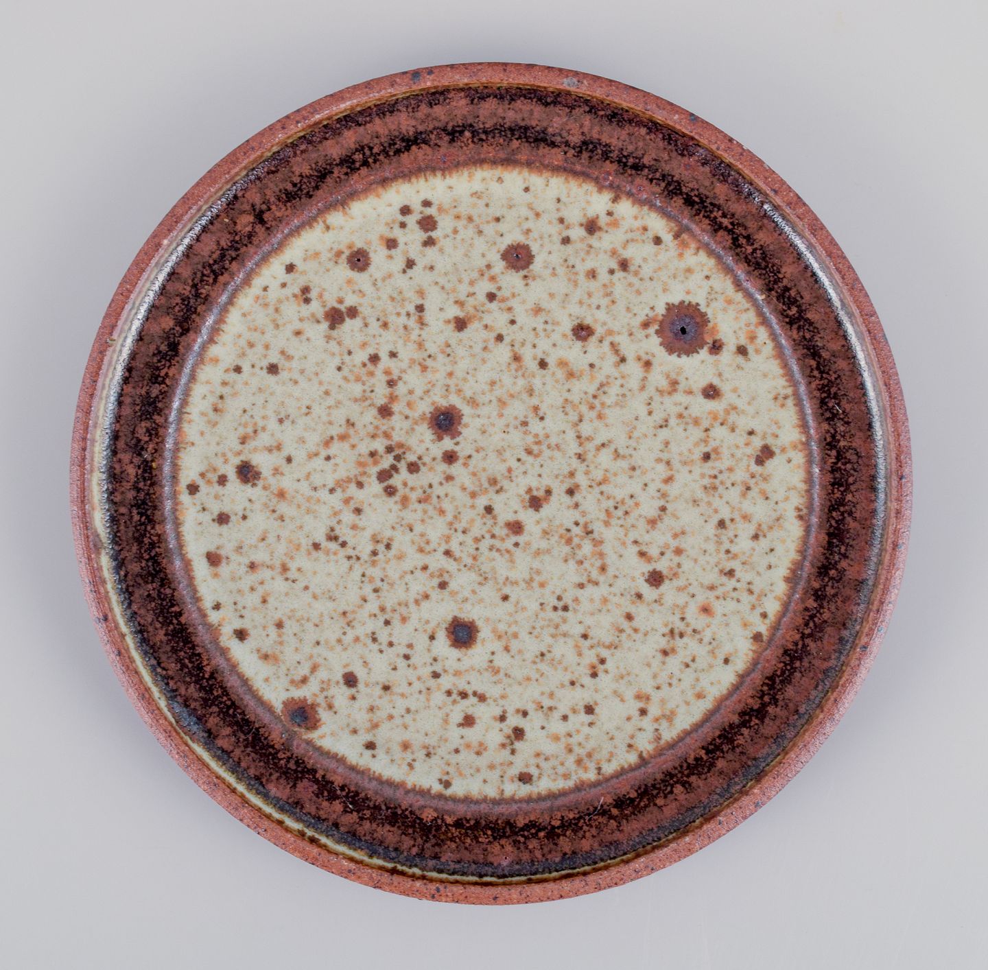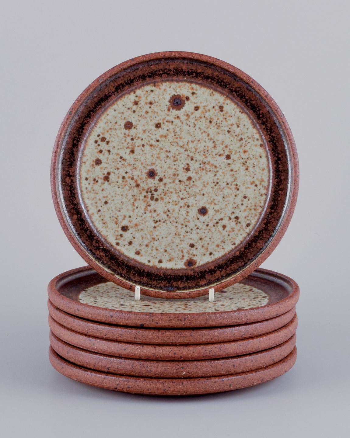 Nysted keramik. Seks unika tallerkner i keramik med brune nuancer.