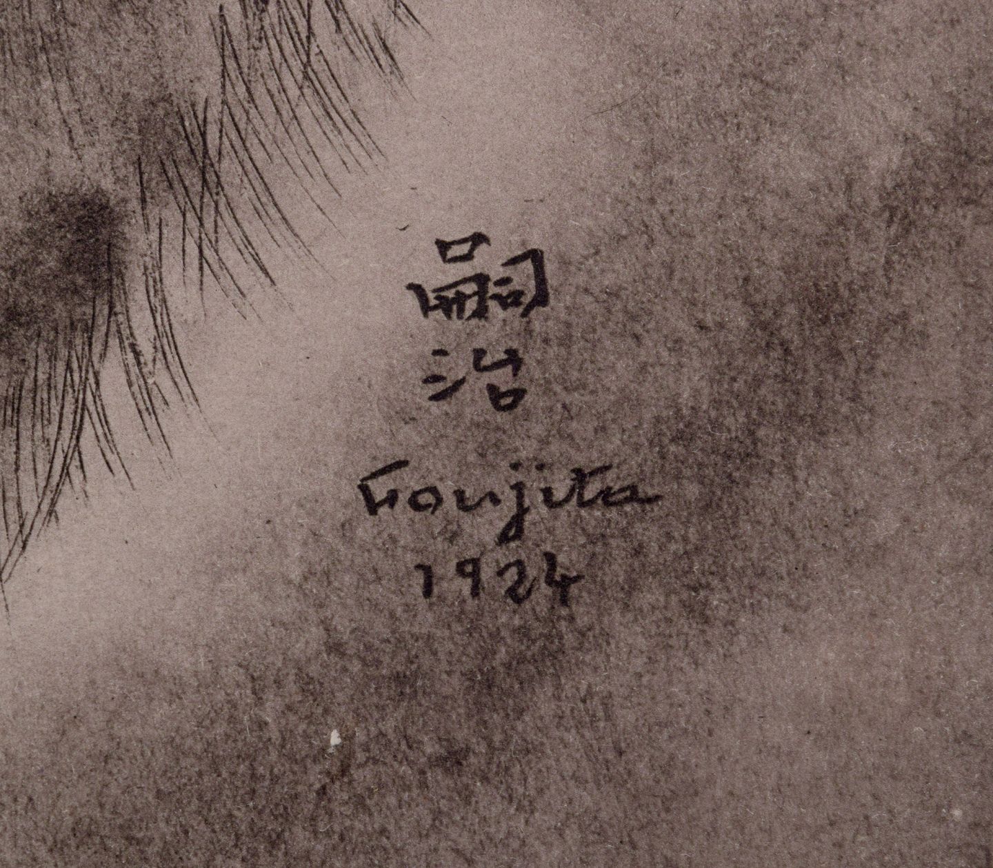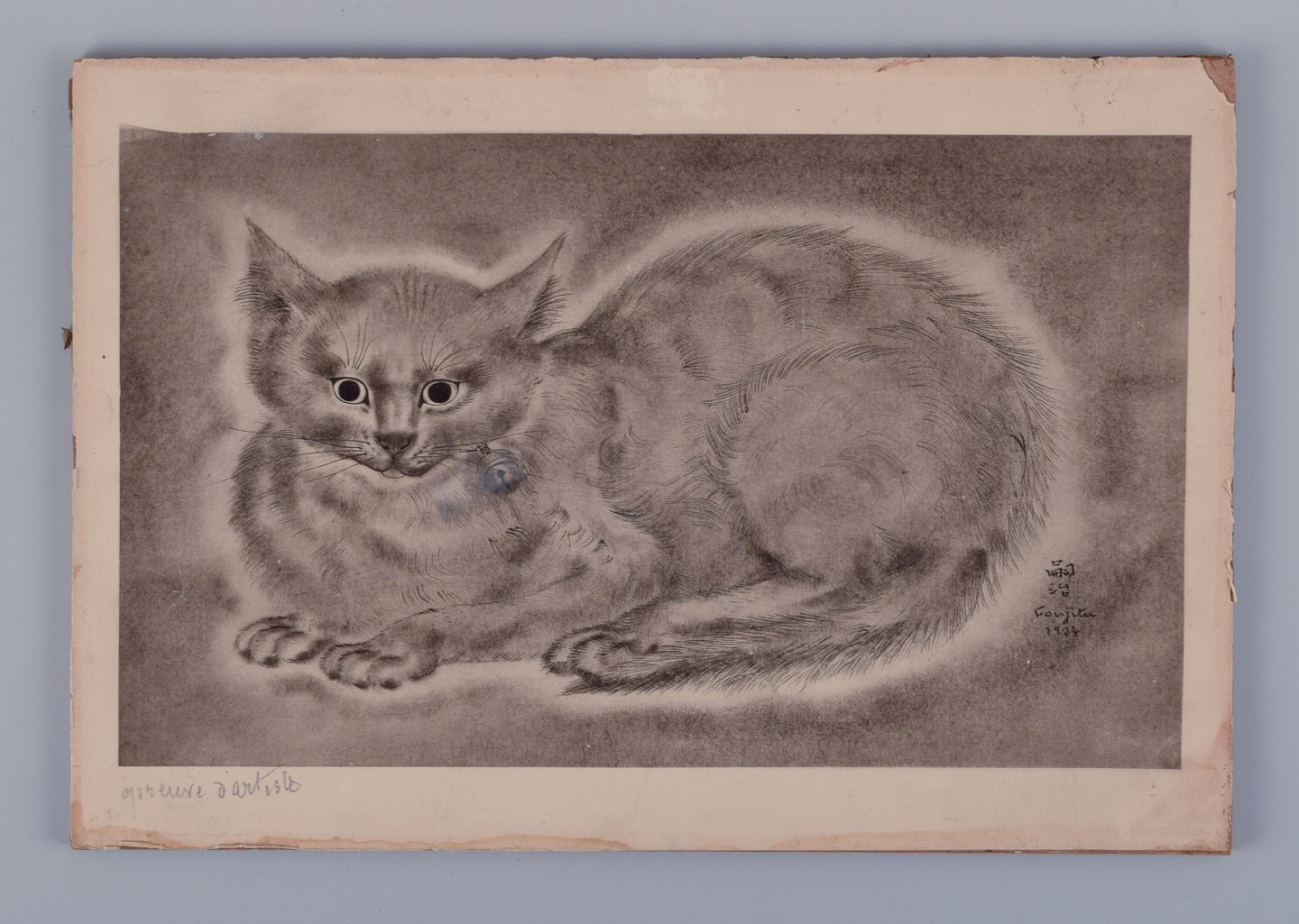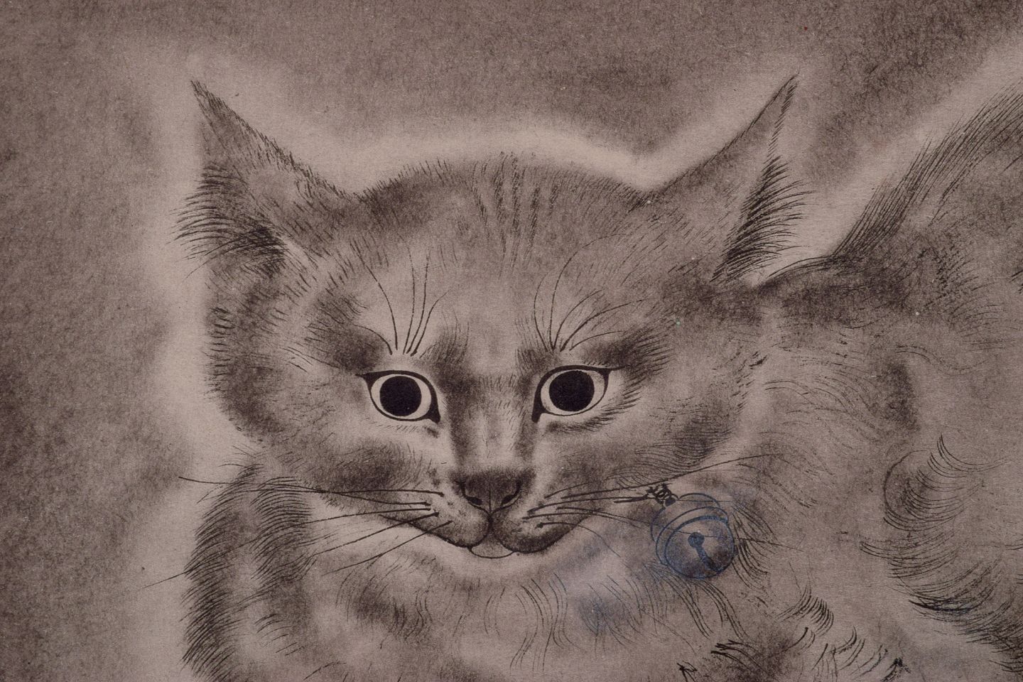 Foujita Tsuguhanu (1886-1968), gravering på papir lagt på plade. Prøvetryk. Portræt af kat.