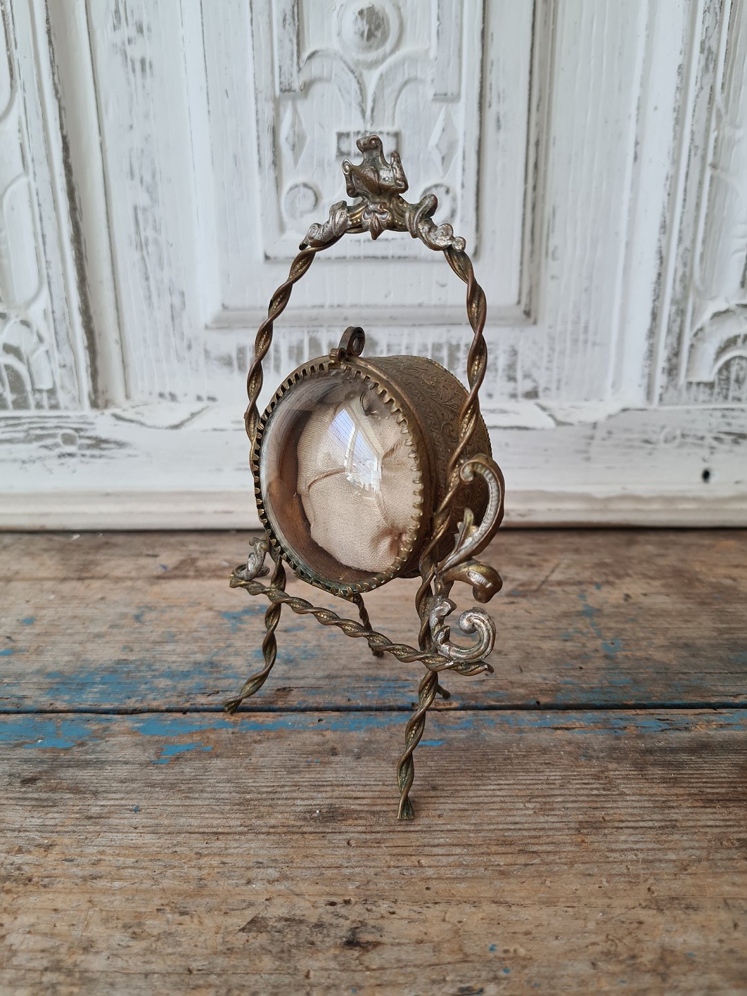 1800 tals fransk skrin til lommeur. Originalt buet glas samt pude.