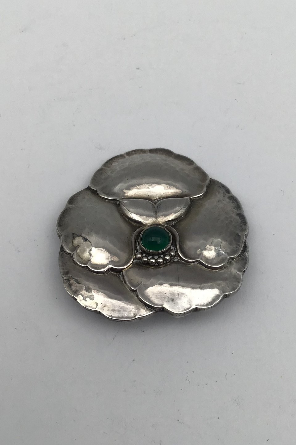 Georg Jensen Sterling Sølv Broche No 113 (Grøn Agat)