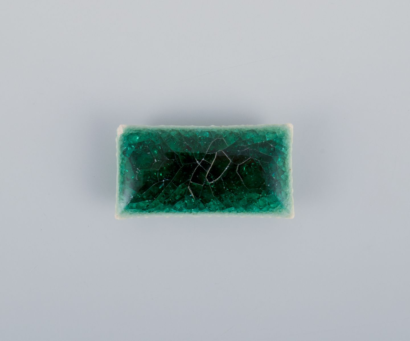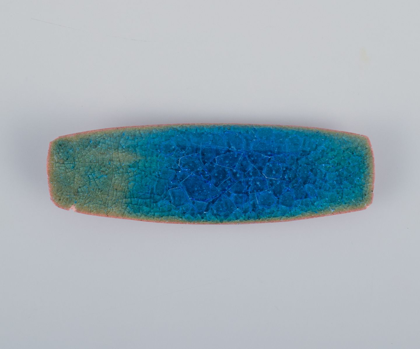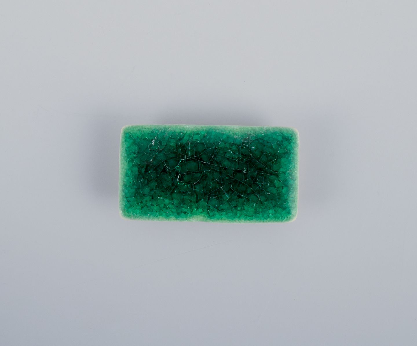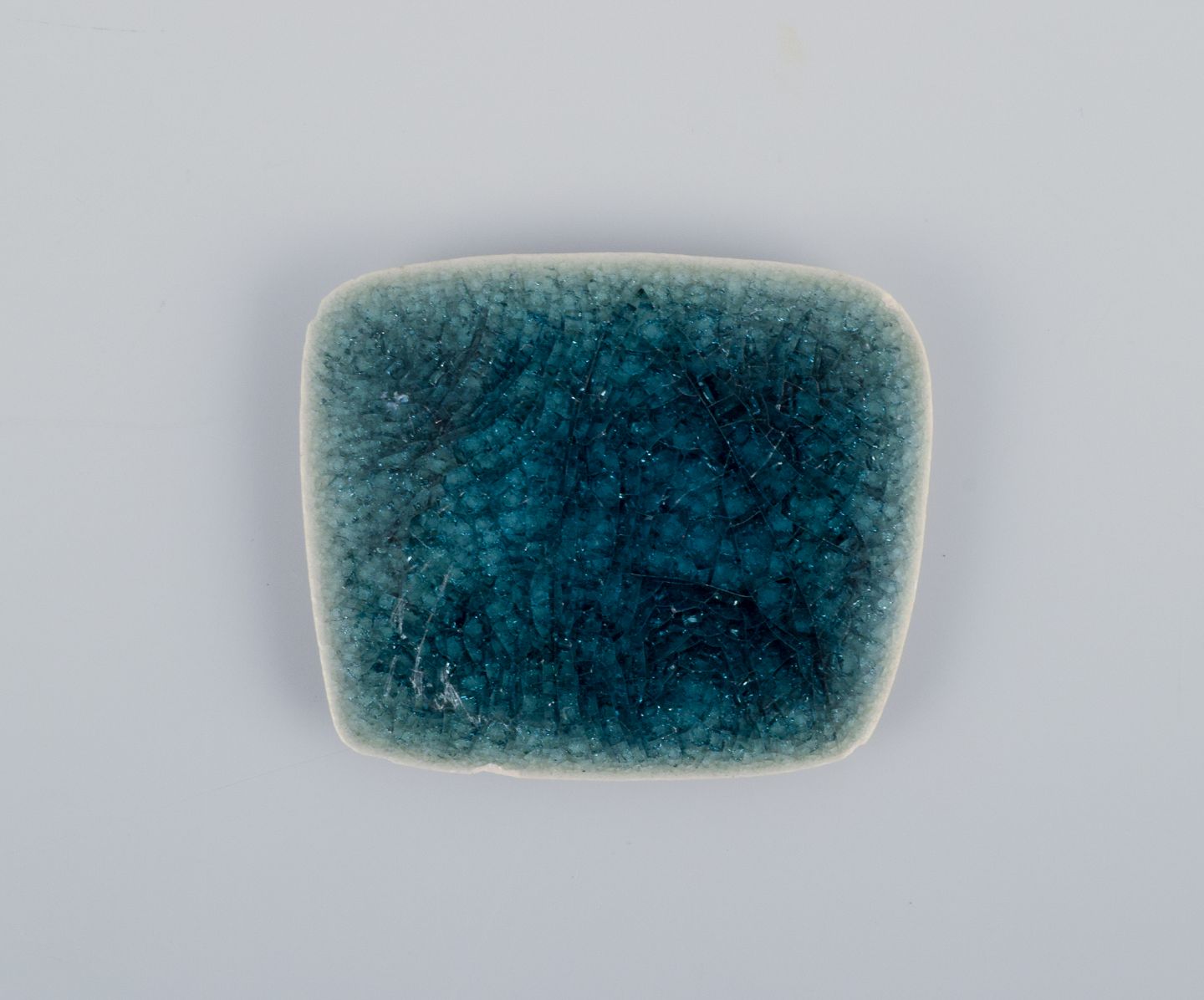 Ole Bjørn Krüger (1922-2007), dansk billedhugger og keramiker. Syv unika brocher i glaseret stentøj i blå og grønne nuancer.