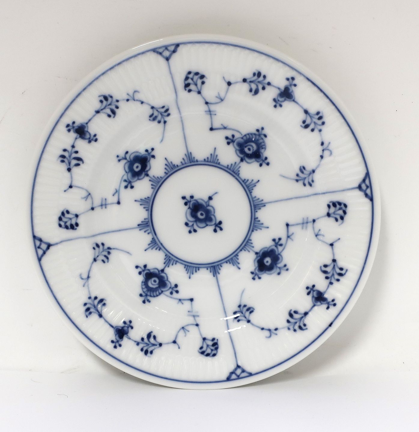 Royal Copenhagen. Musselmalet, riflet. Kagetallerken. Model 180. Diameter 17 cm. (2 sortering)