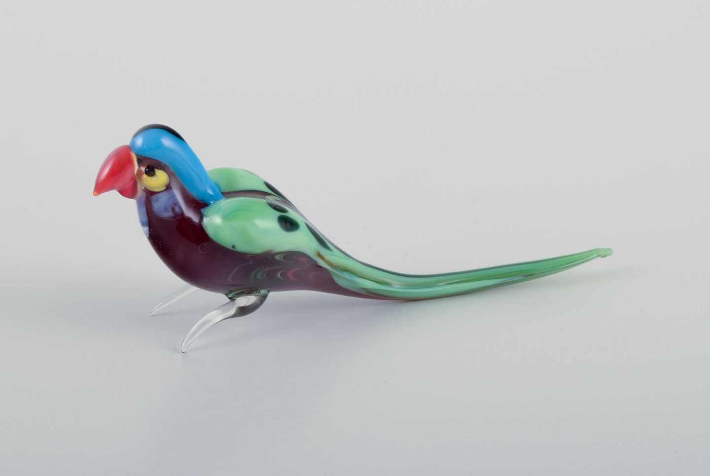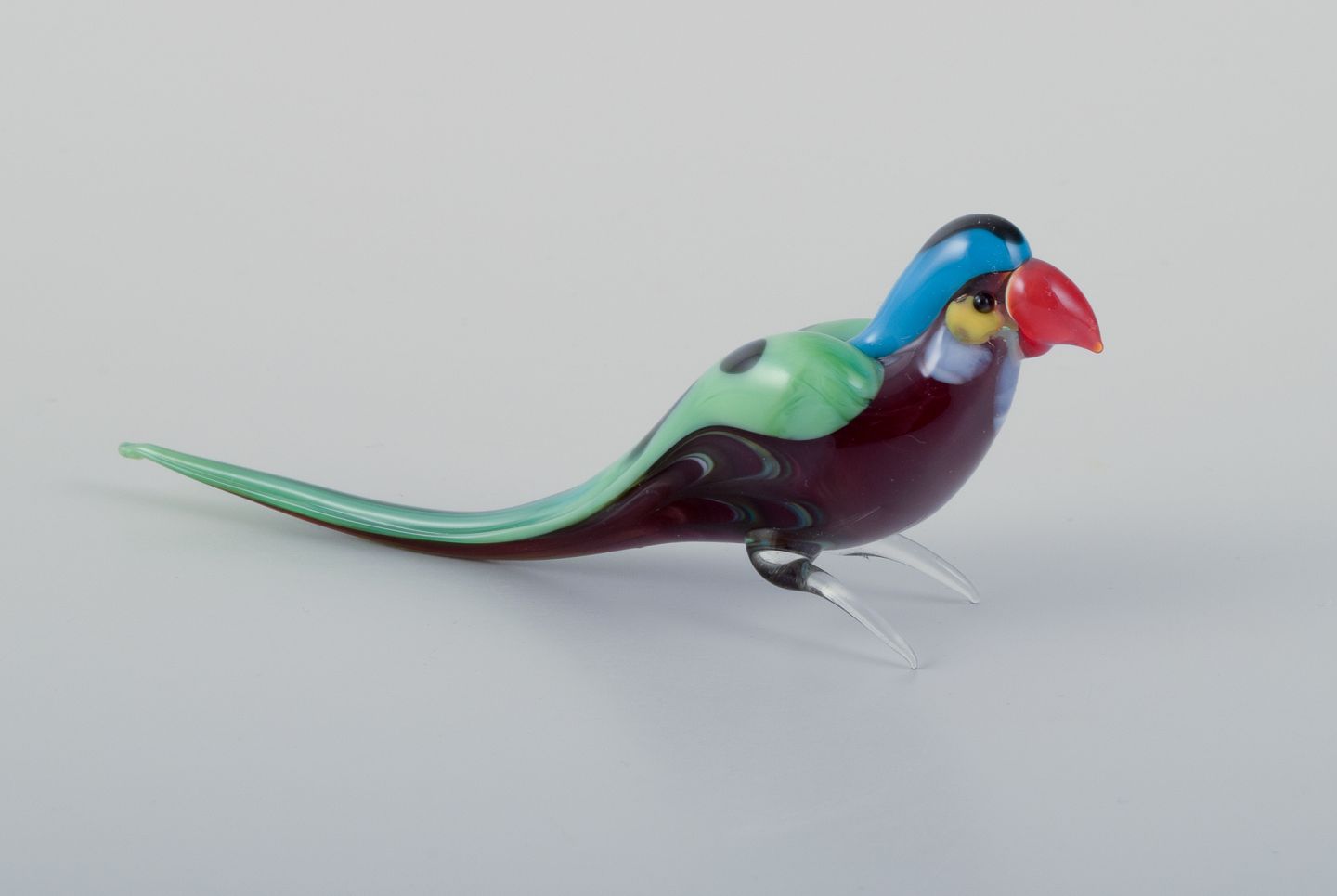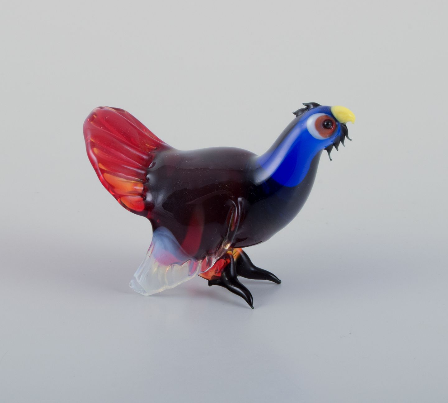 Murano, Italien. En samling på fire miniature glasfigurer af fugle i farvet kunstglas.