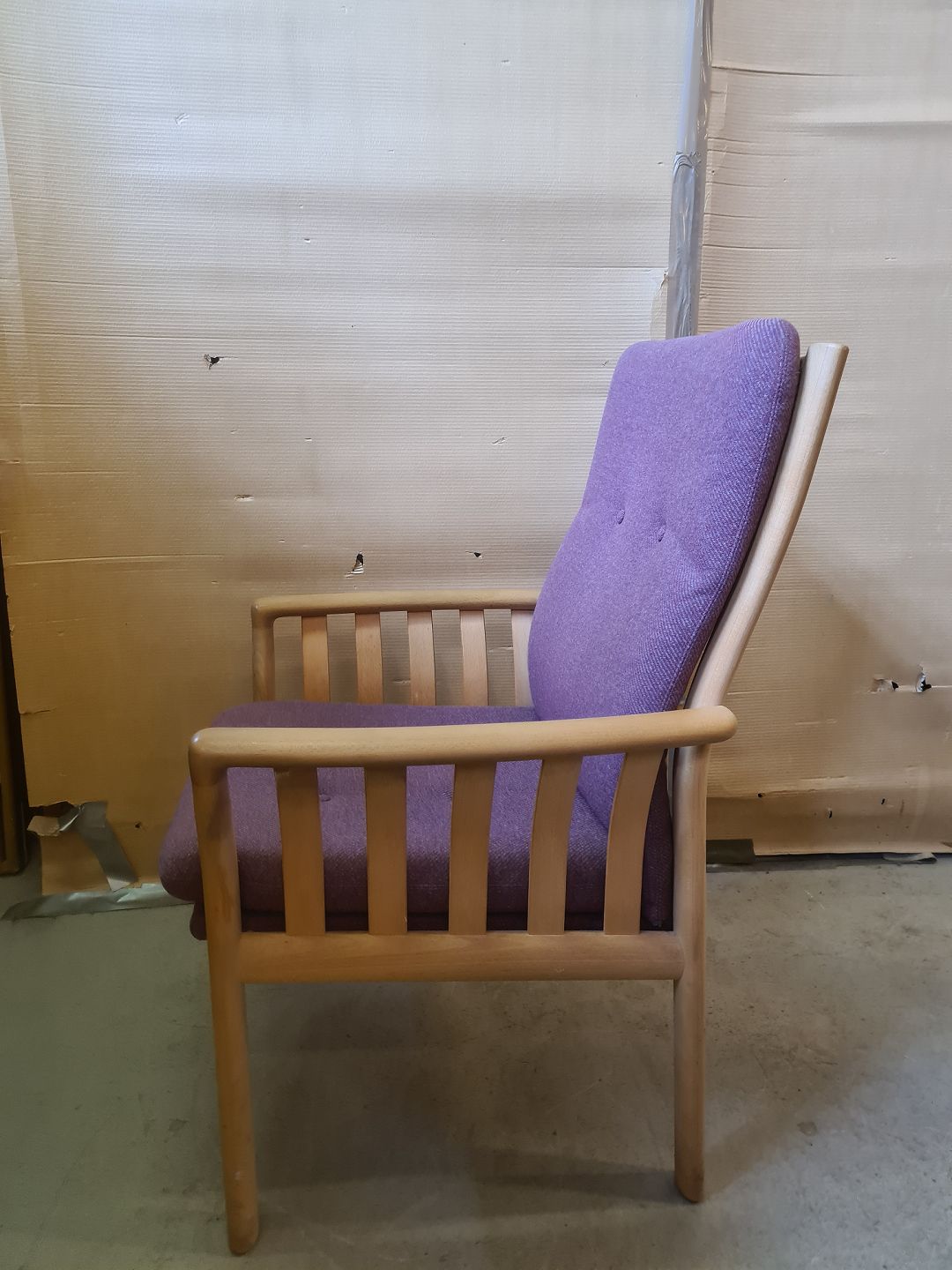 Lænestol i massivt bøgetræ med uldhynder, fra 200erne.