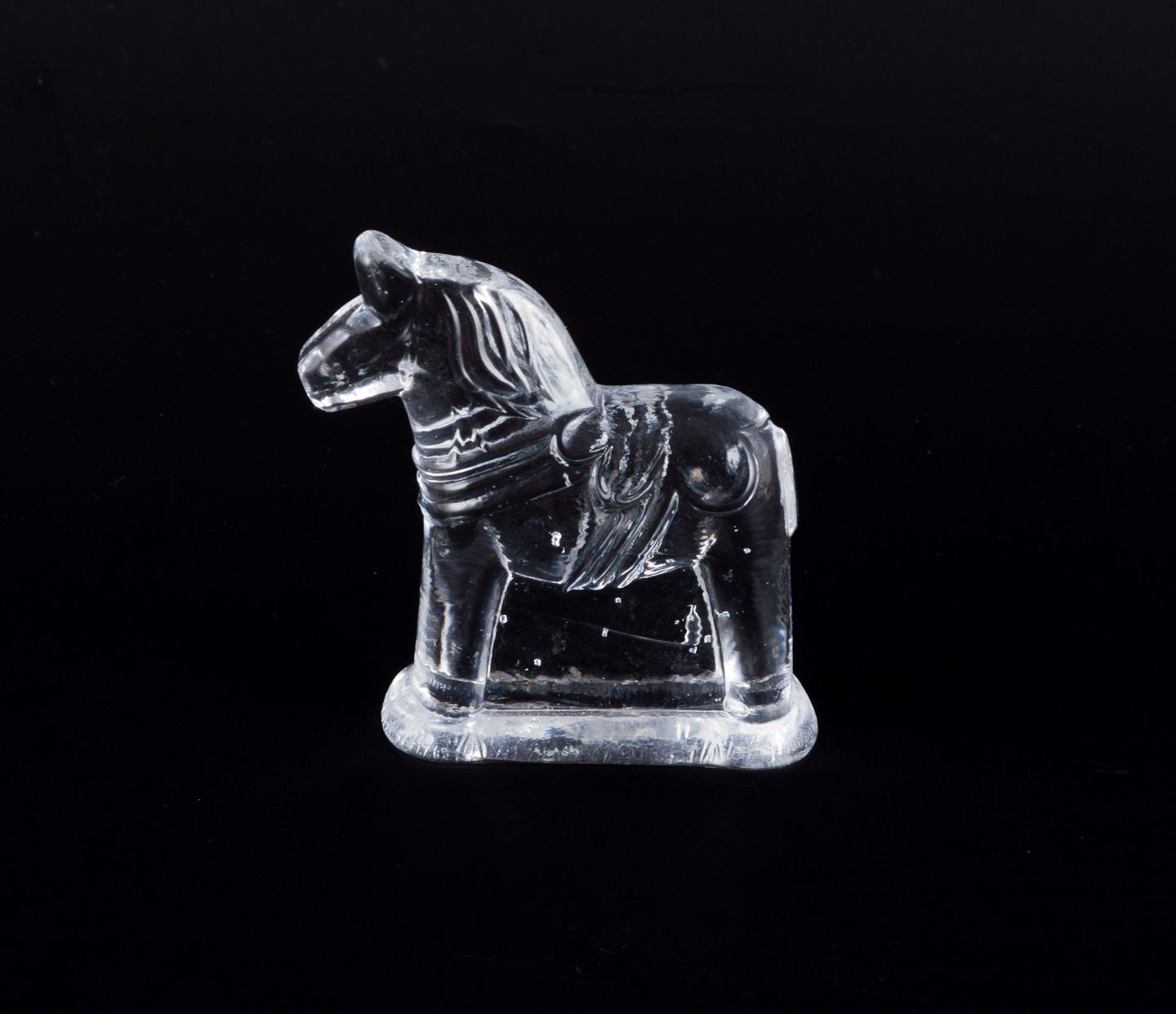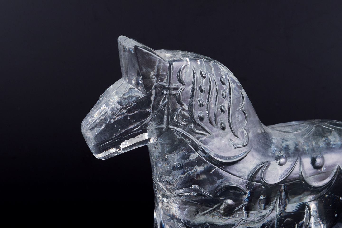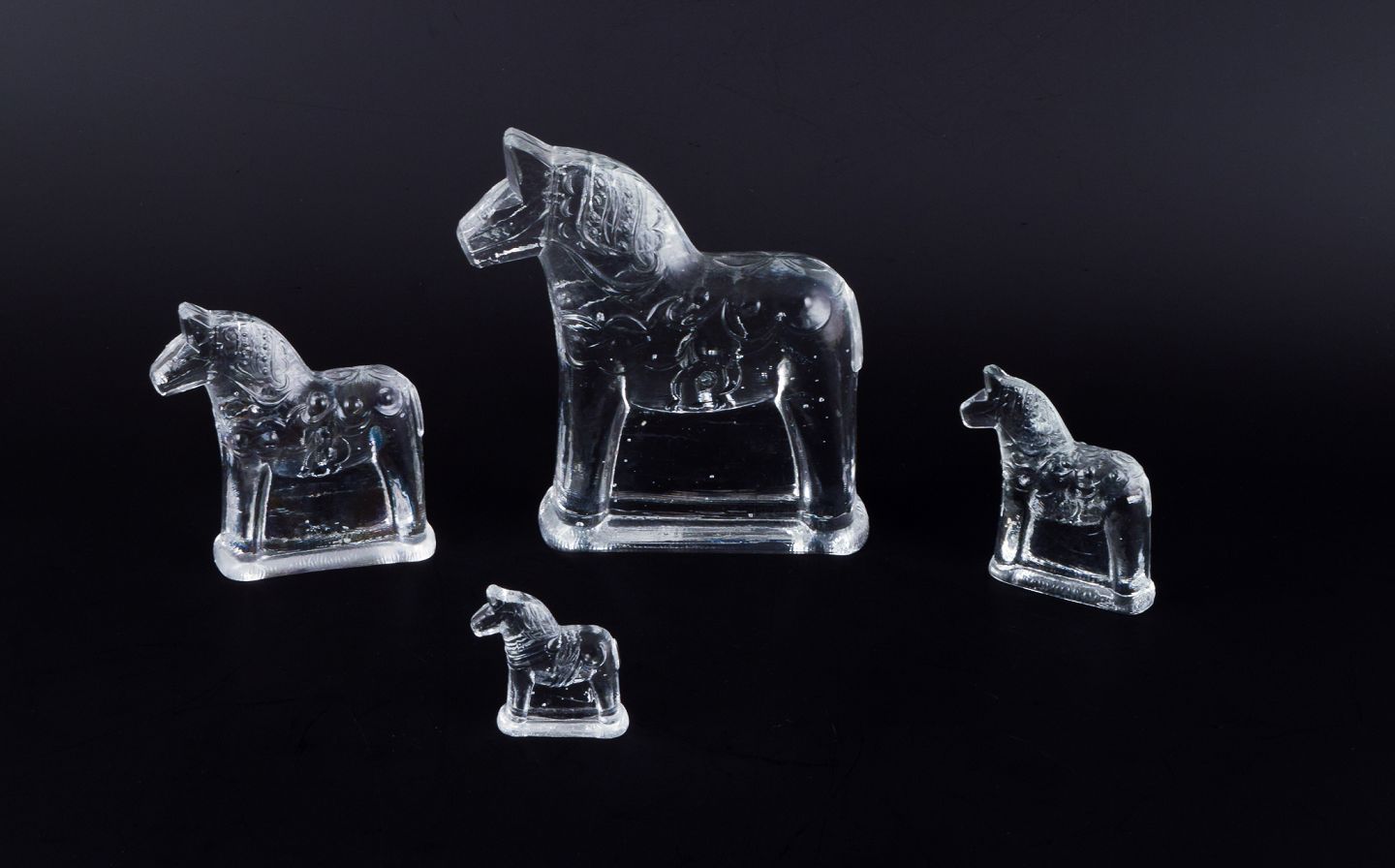 Svensk glaskunstner, fire dalarheste i klart mundblæst kunstglas.