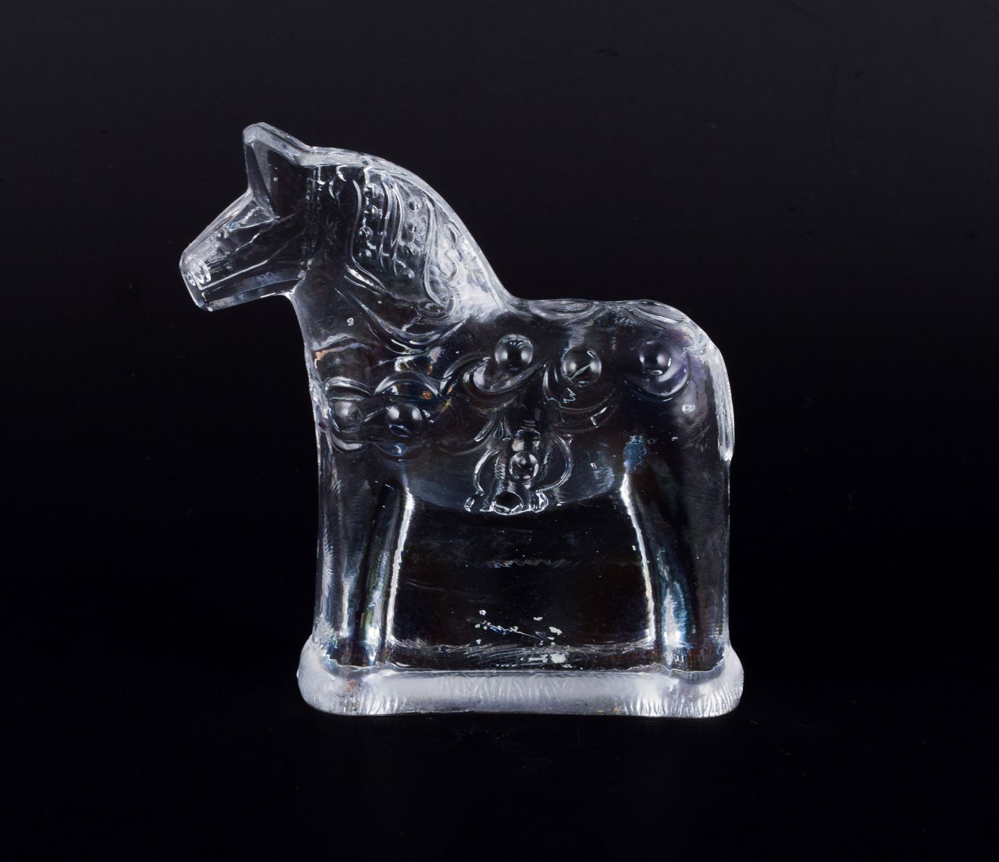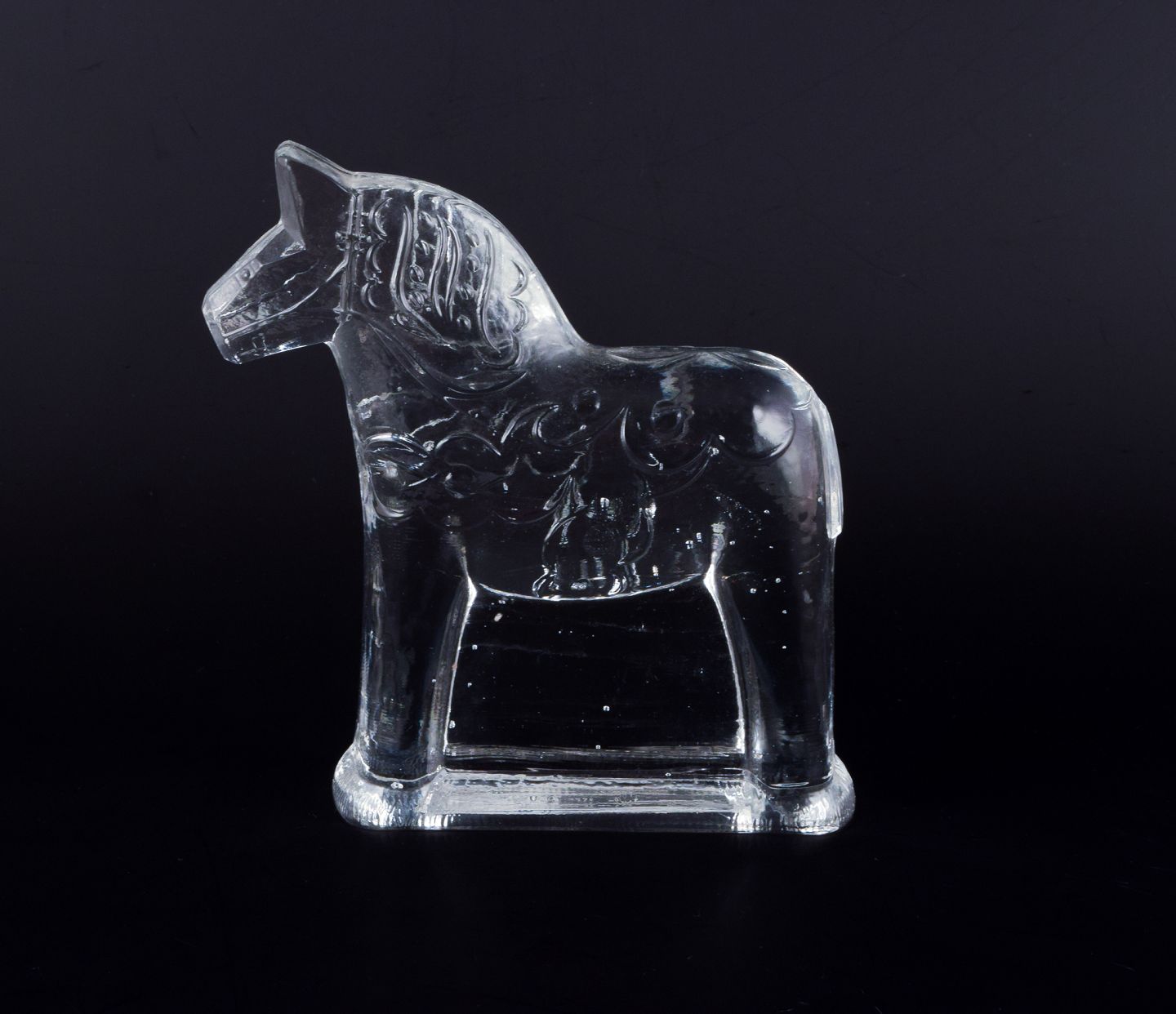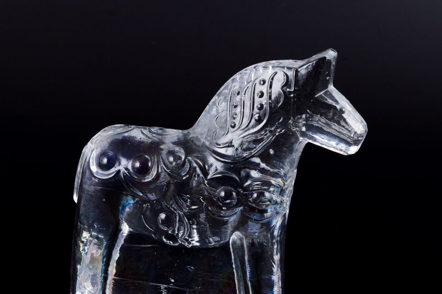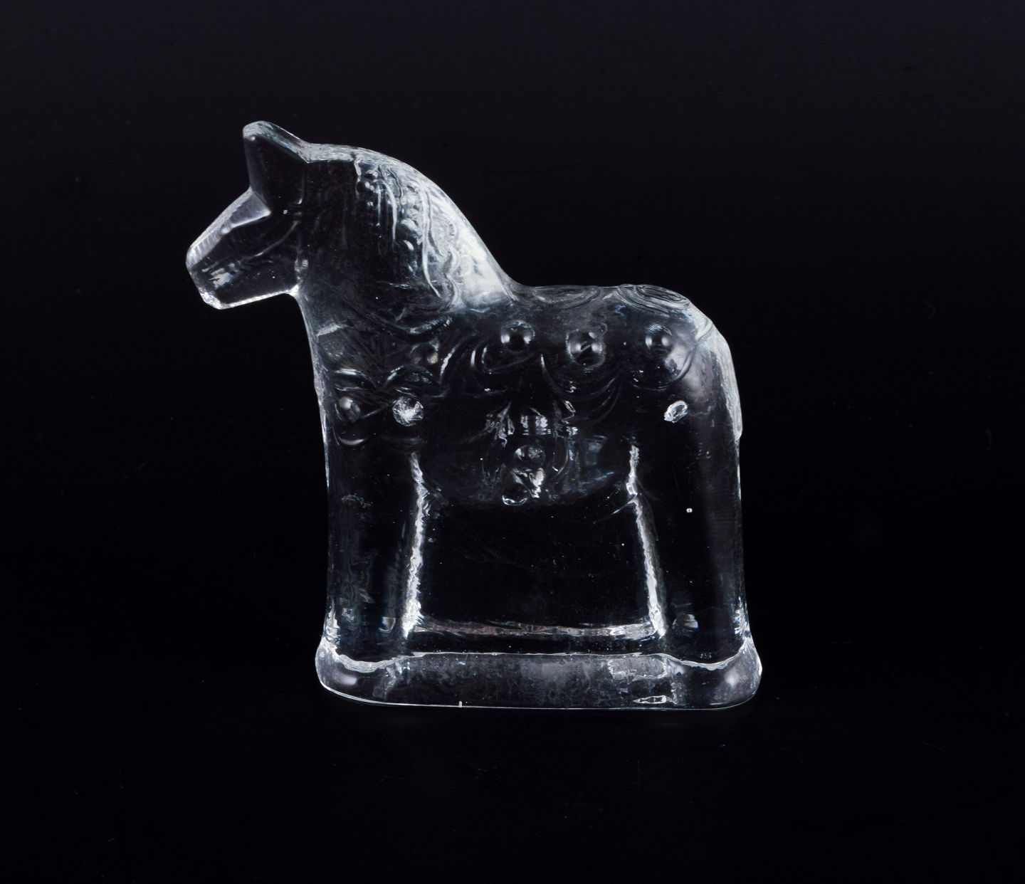 Svensk glaskunstner, fire dalarheste i klart mundblæst kunstglas.