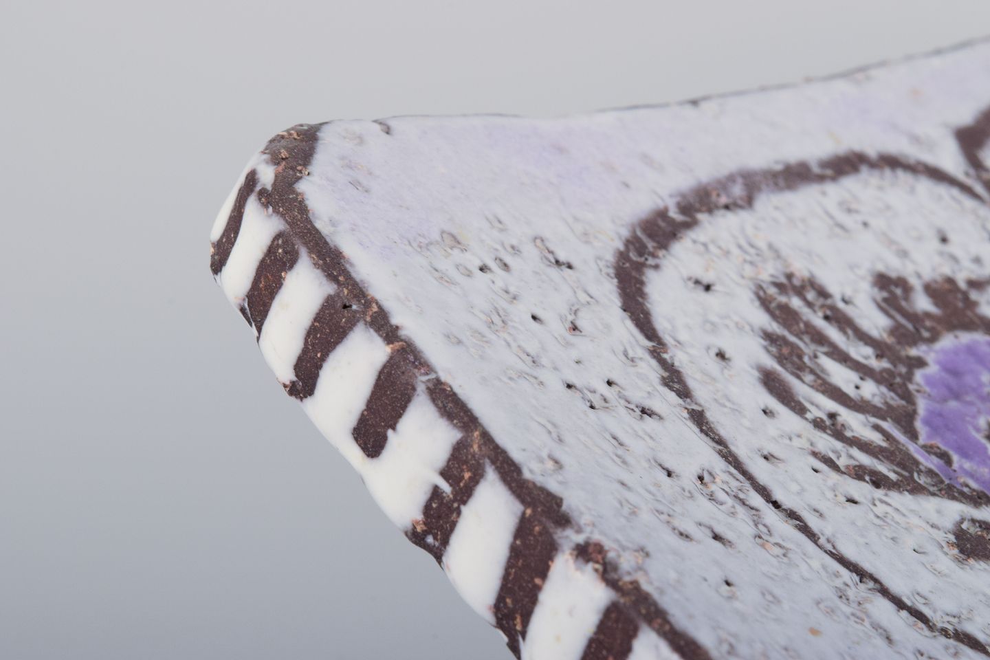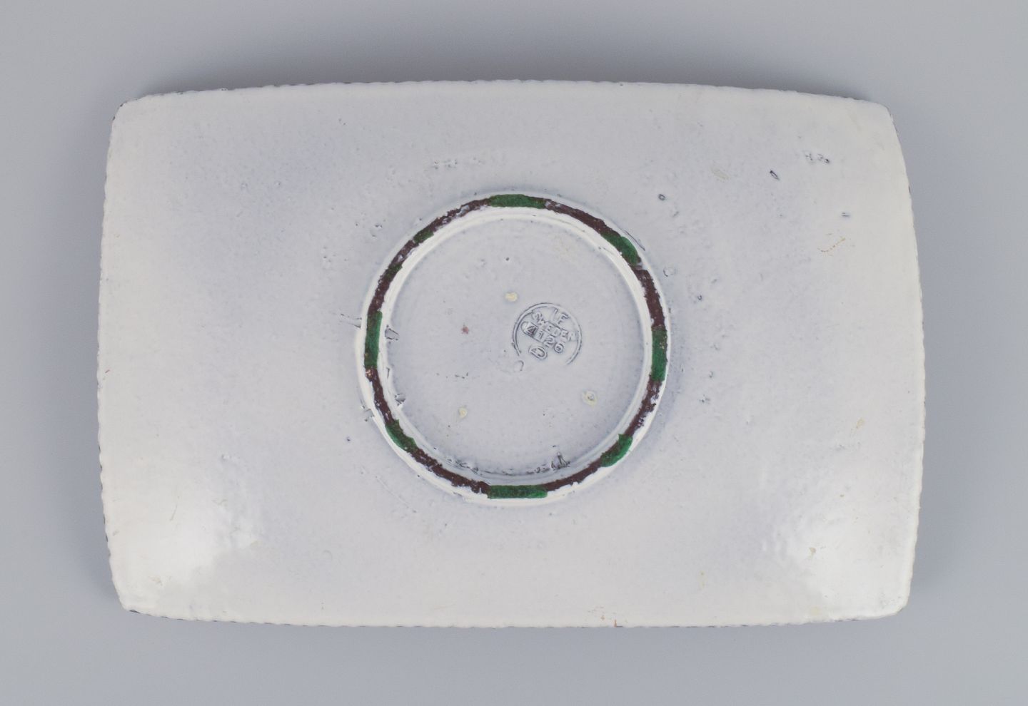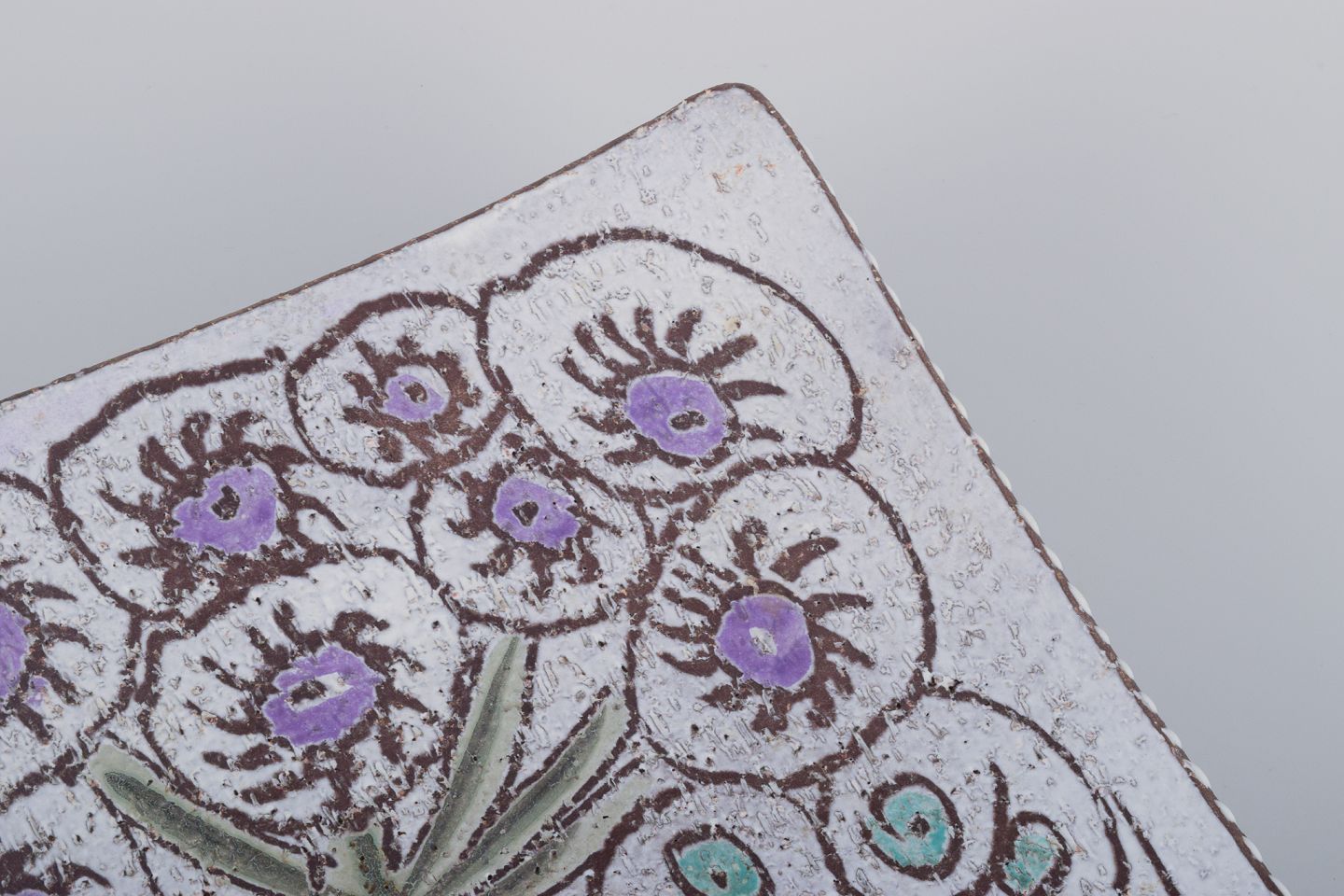 Mari Simmulson for Upsala Ekeby, Sverige. Stort aflangt fad på fod. Blomstermotiv i retrostil.