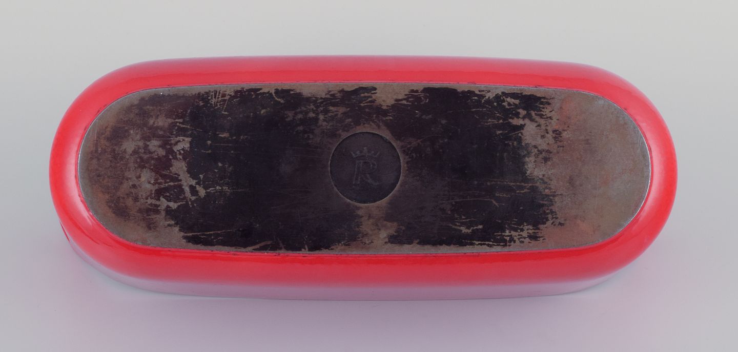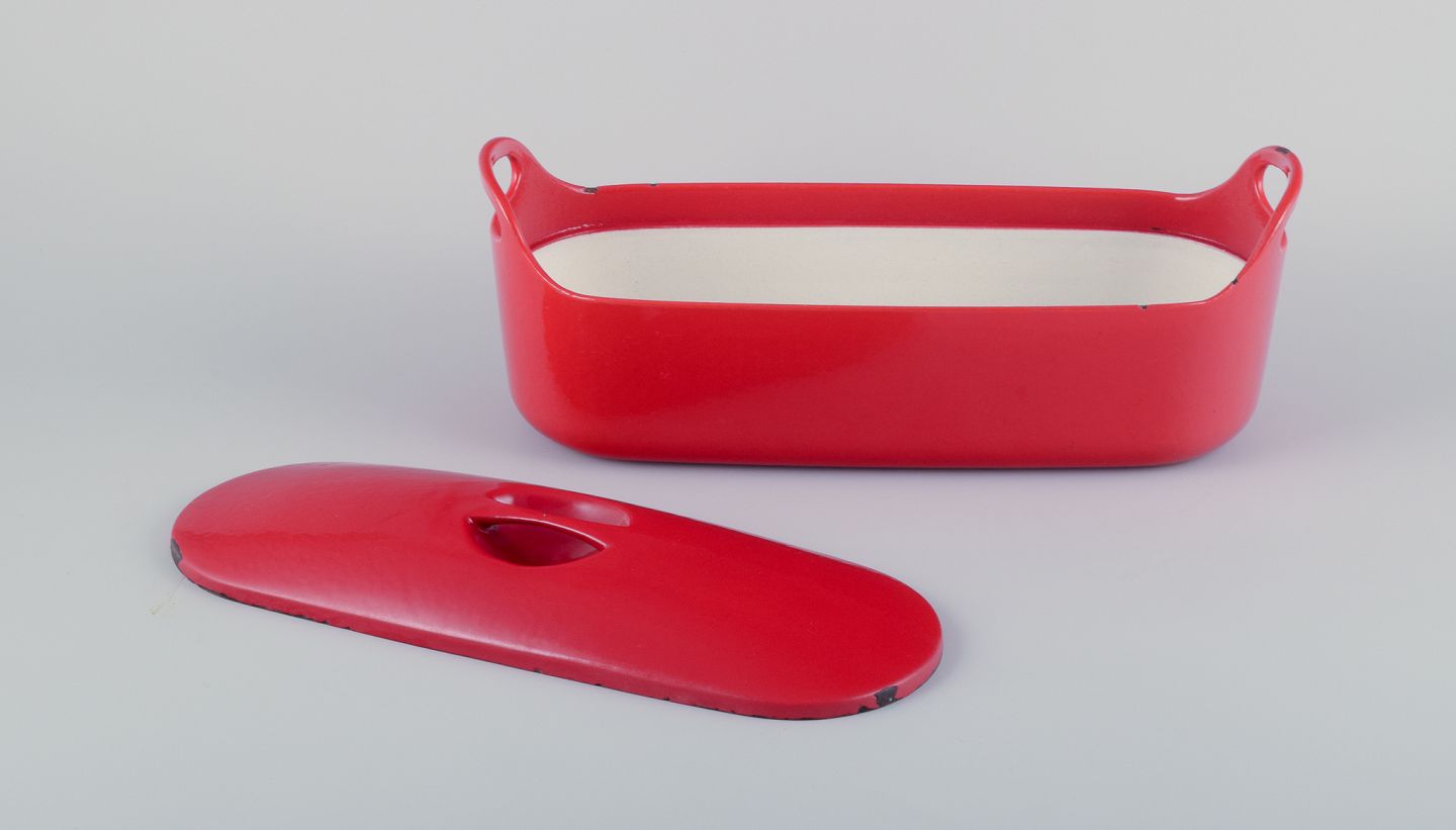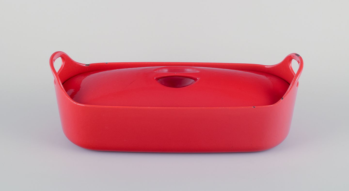 Timo Sarpaneva for Rosenlew, Finland. Sjælden fisketerrin i støbejern med rød emalje.