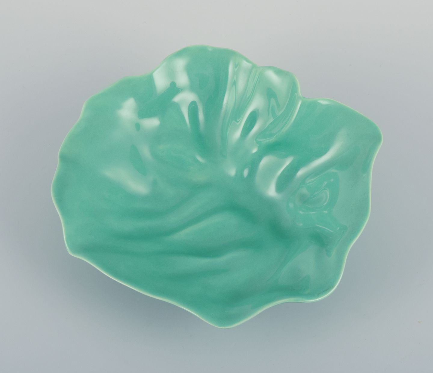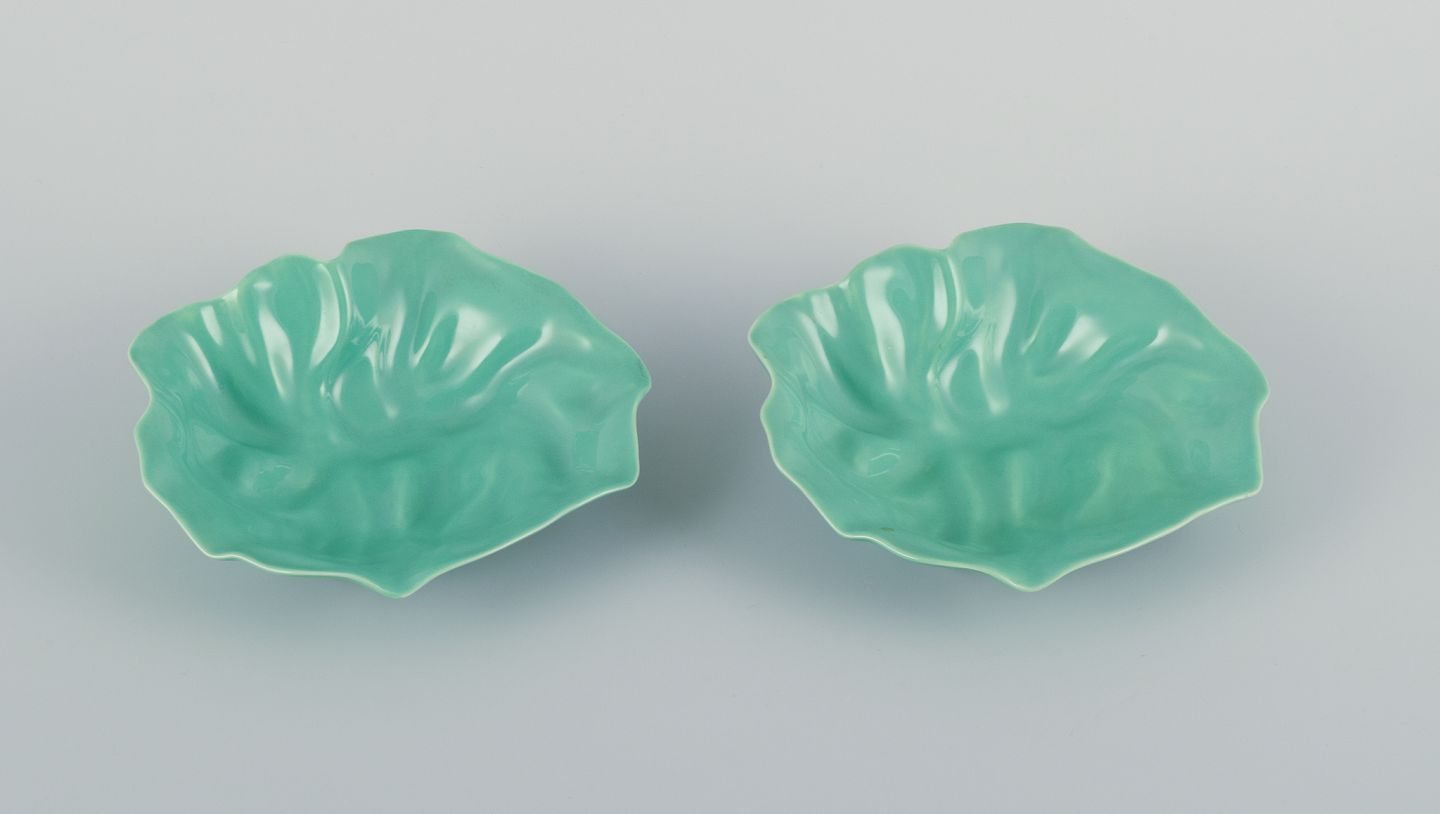 Royal Copenhagen, 4 All Seasons. To organisk formede skåle i fajance med grøn glasur.