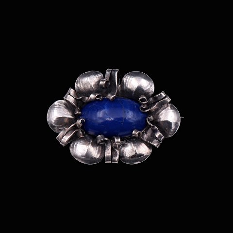 Mogens Ballin 1871-1914. Skønvirke Broche i sølv med lapis lazuli.