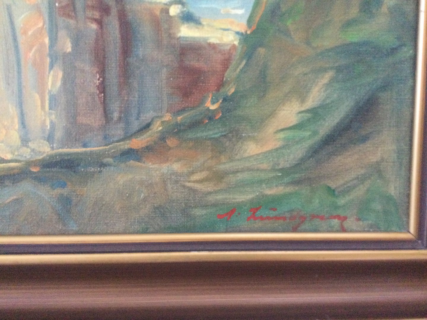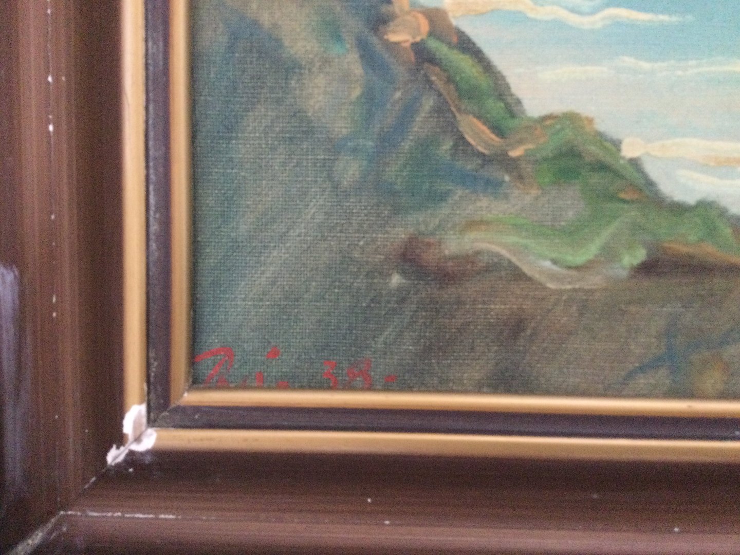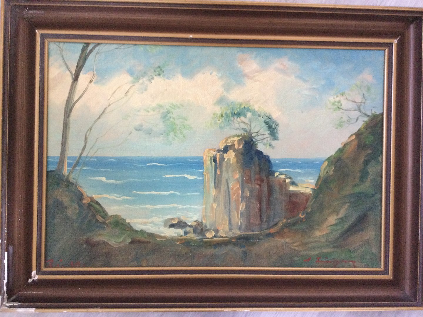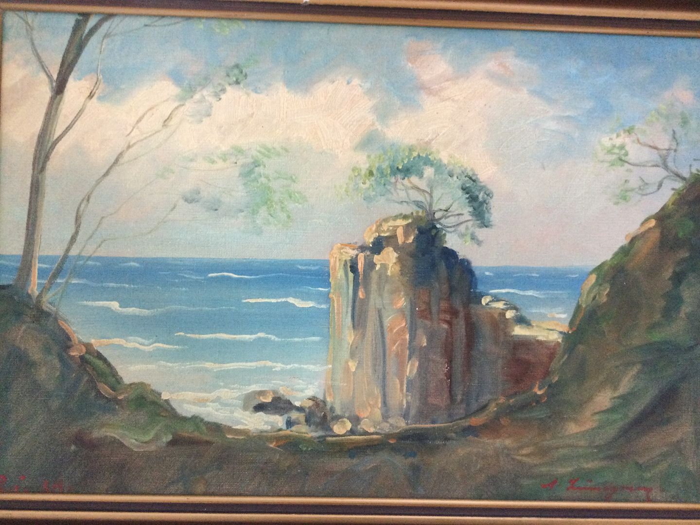 Maleri - Aksel Lundgreen 1938 - Klippeparti fra Rø på Bornholm.