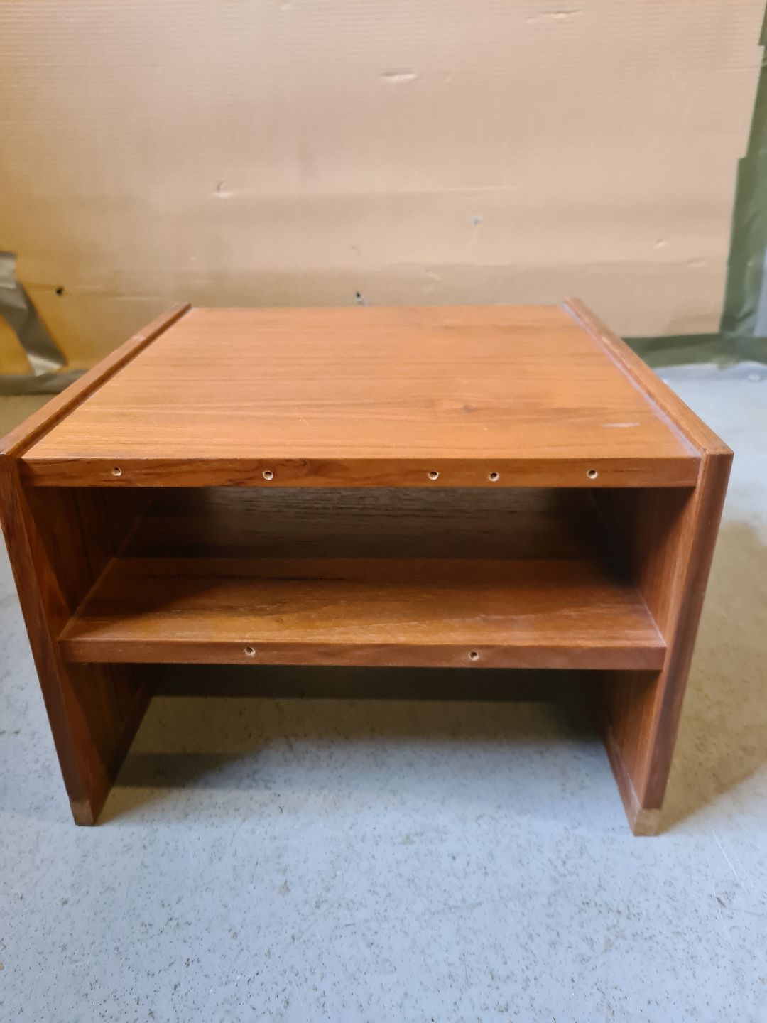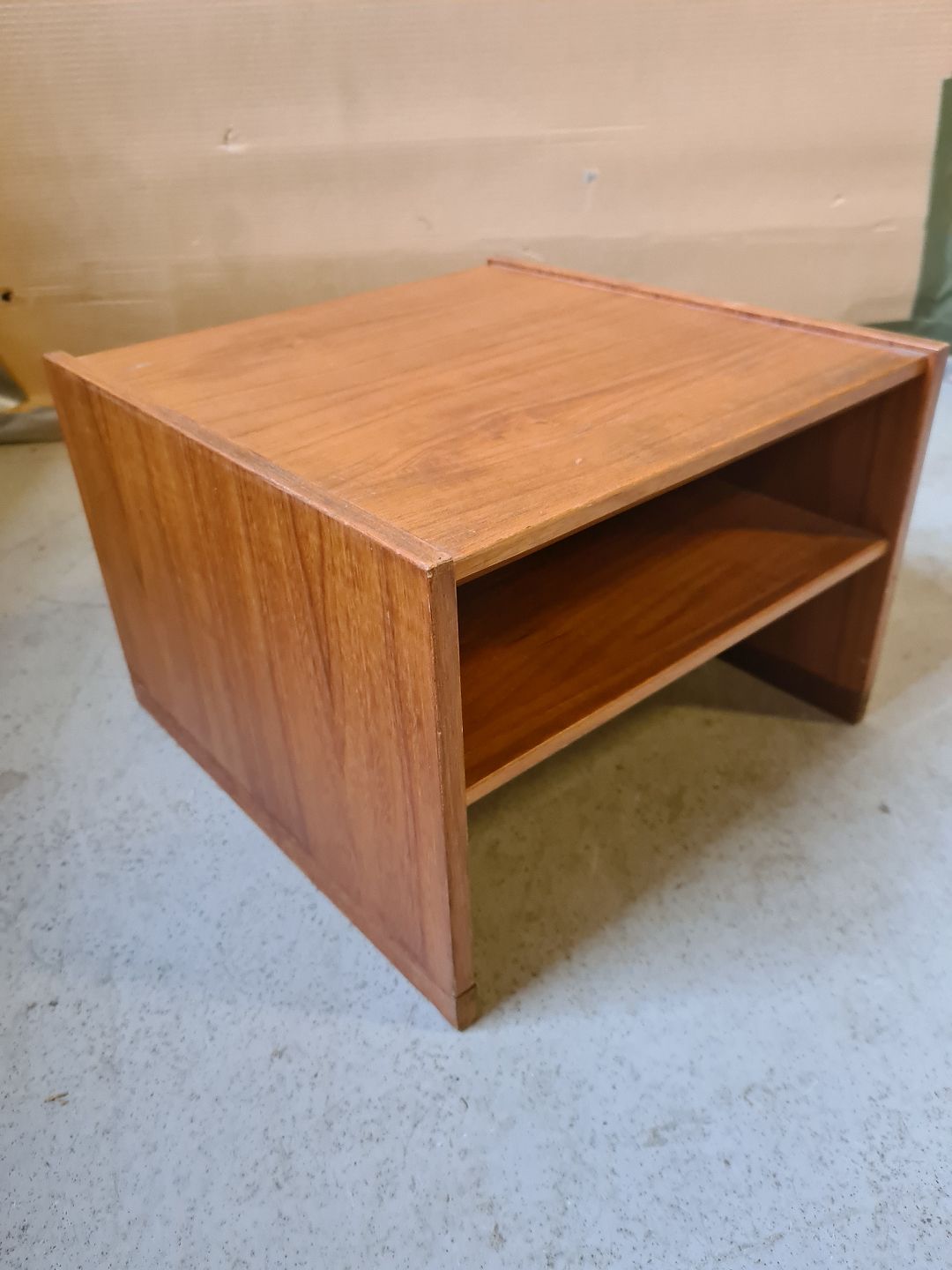 Mini møbel med hylde i fineret teaktræ, fra 1960erne.