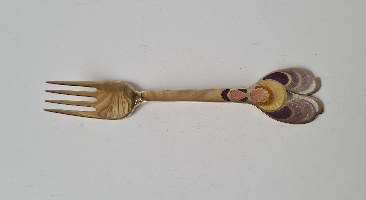 A.Michelsen Christmas fork in gilded sterling silver with enamel 1972