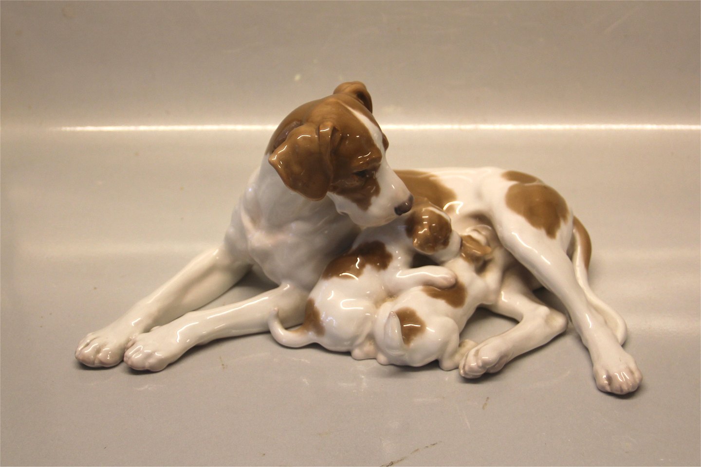 B&G 2111 Pointer med hvalpe 28 cm i fin stand Bing & Groendahl Lauritz Jensen 1859 – 1935