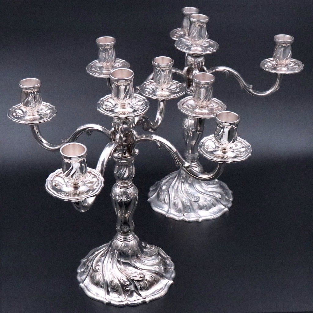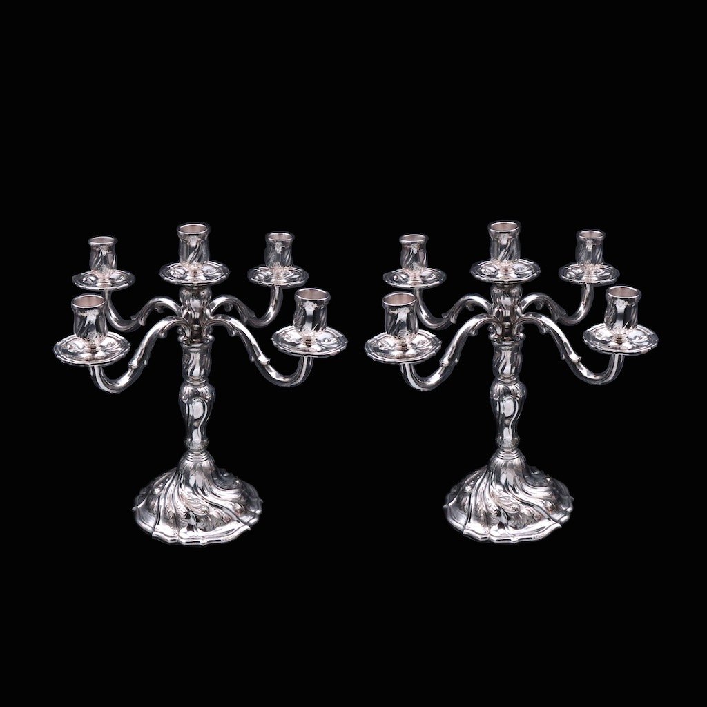 Peter Hertz. Et par fem-armet kandelabra i sølv.