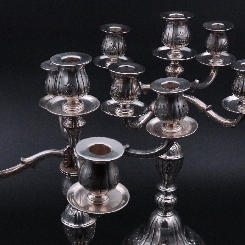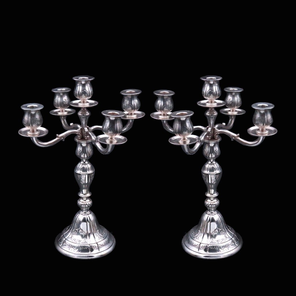 L W. Valentin - Copenhagen. A pair of Silver Five-Light Candelabra.