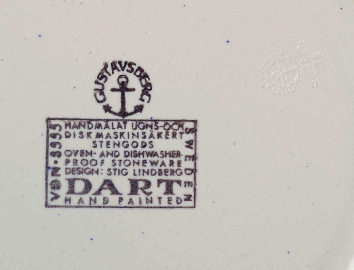 Stig Lindberg (1916–1982) for Gustavsberg. Et sæt på otte ”Dart” tallerkner i stentøj. Håndmalet.