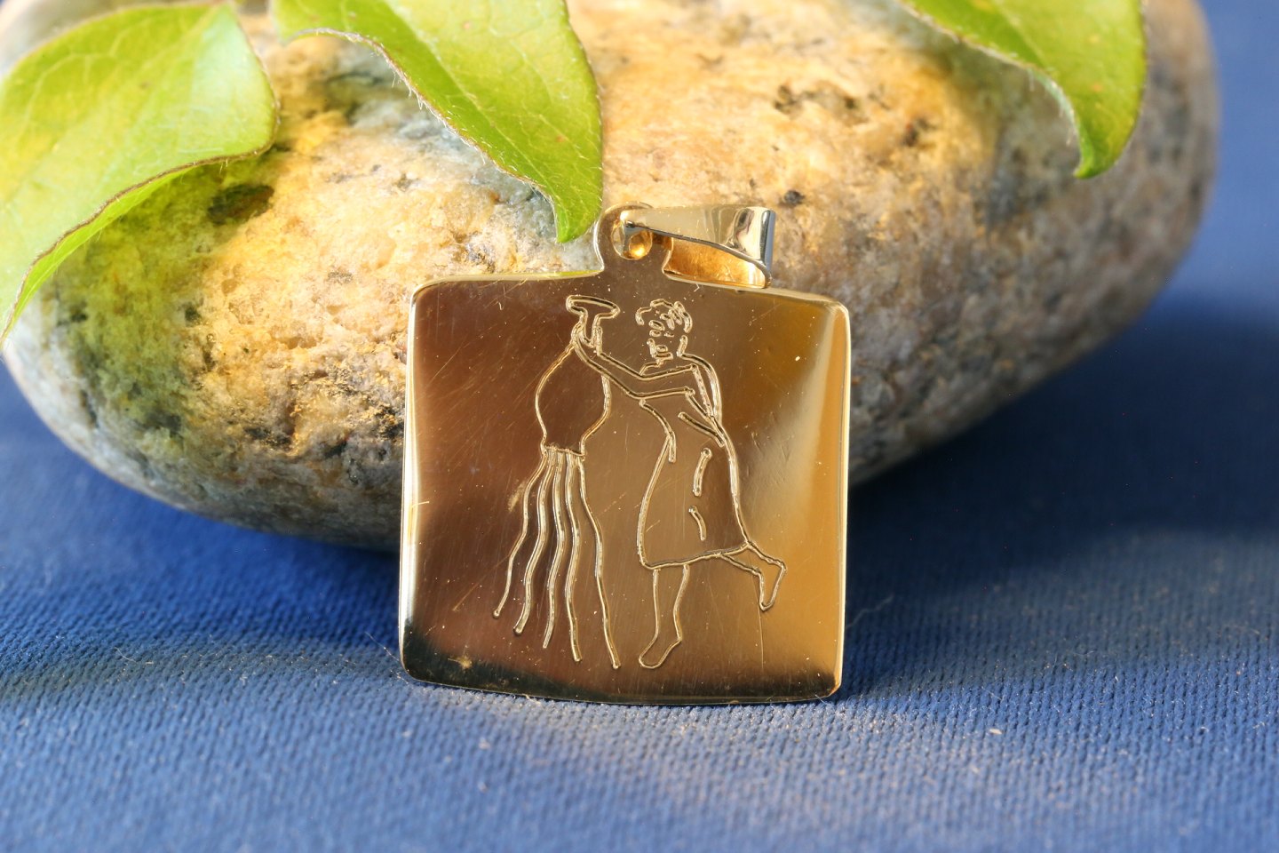 Flot lille vedhæng i 14 karat guld, motiv vandmanden. Vedhænget er lille og tyndt, men et smukt smykke til en halskæde eller som kombination med charms i et armbånd.