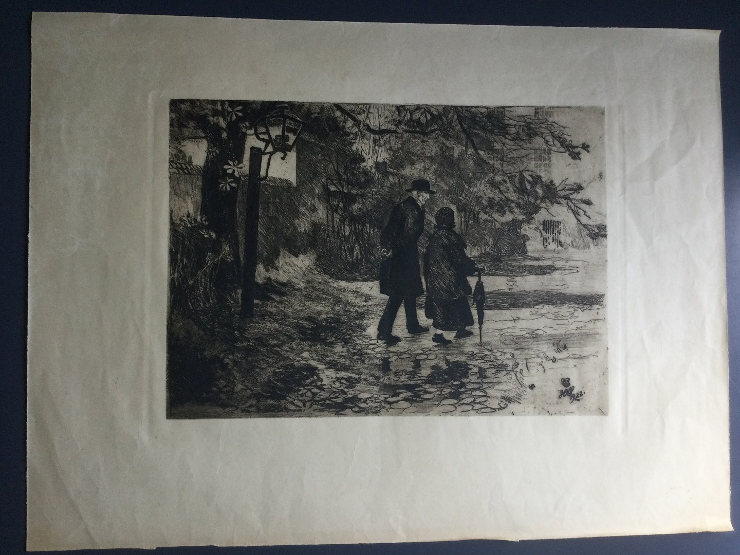 Radering - Hans Nikolaj Hansen - 1922 - Frederik Paludan-Müller og Charite Borch i Fredensborg.
