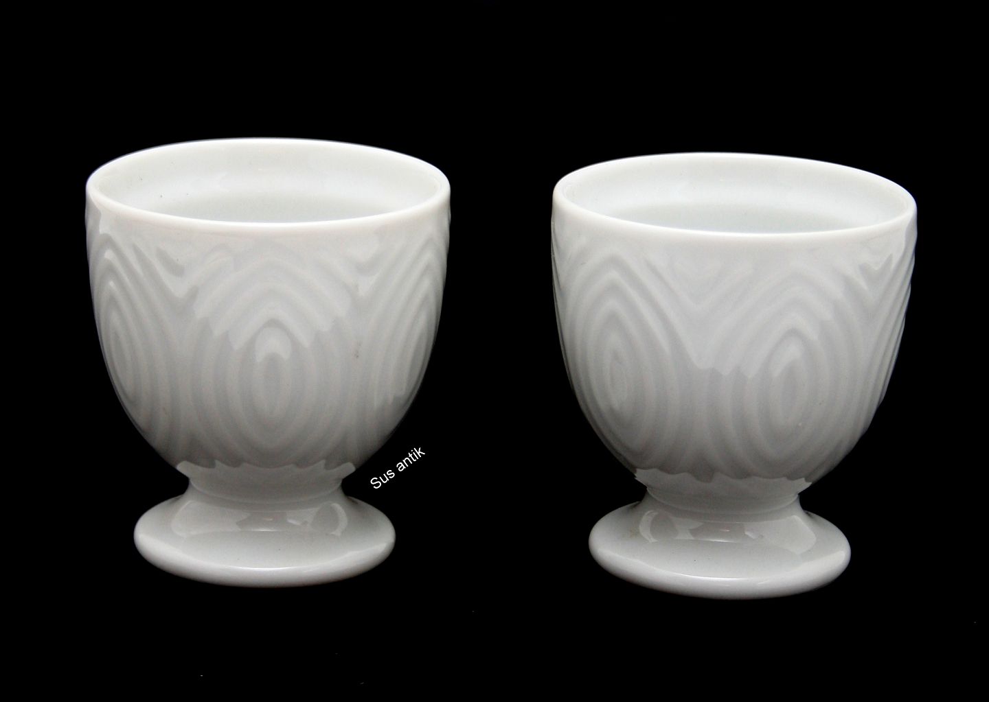 Royal Copenhagen, Salto, hvidt stel med mønster. Designet af Axel Salto. Æggebæger. Højde 5,5 cm. Diameter 5 cm. I. sortering. Pris: 175 kr. stk. Lager: 8