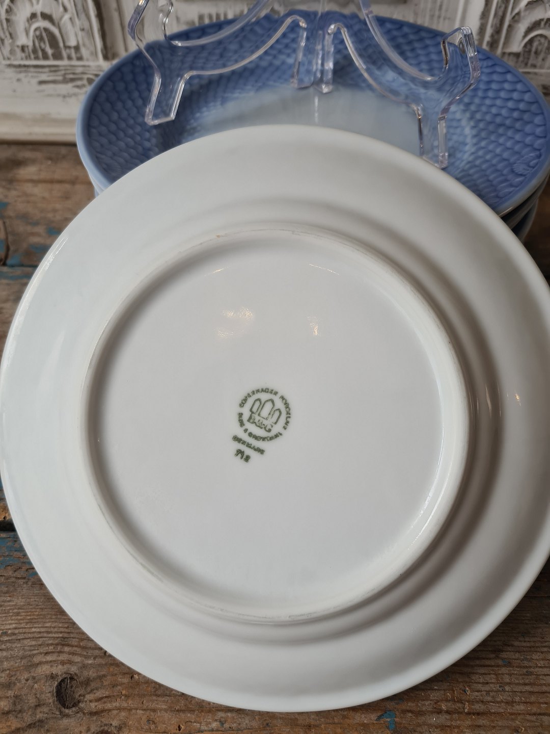 B&G Blå Tone frokosttallerken med logo "Sparekassen" no. 712 - 1007 - 21,5 cm.