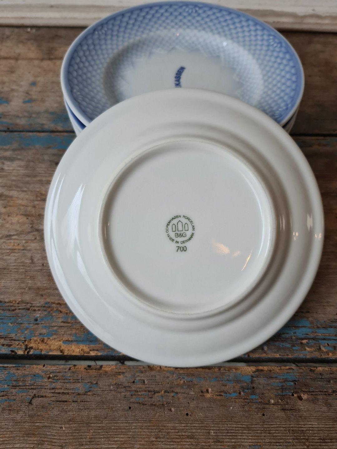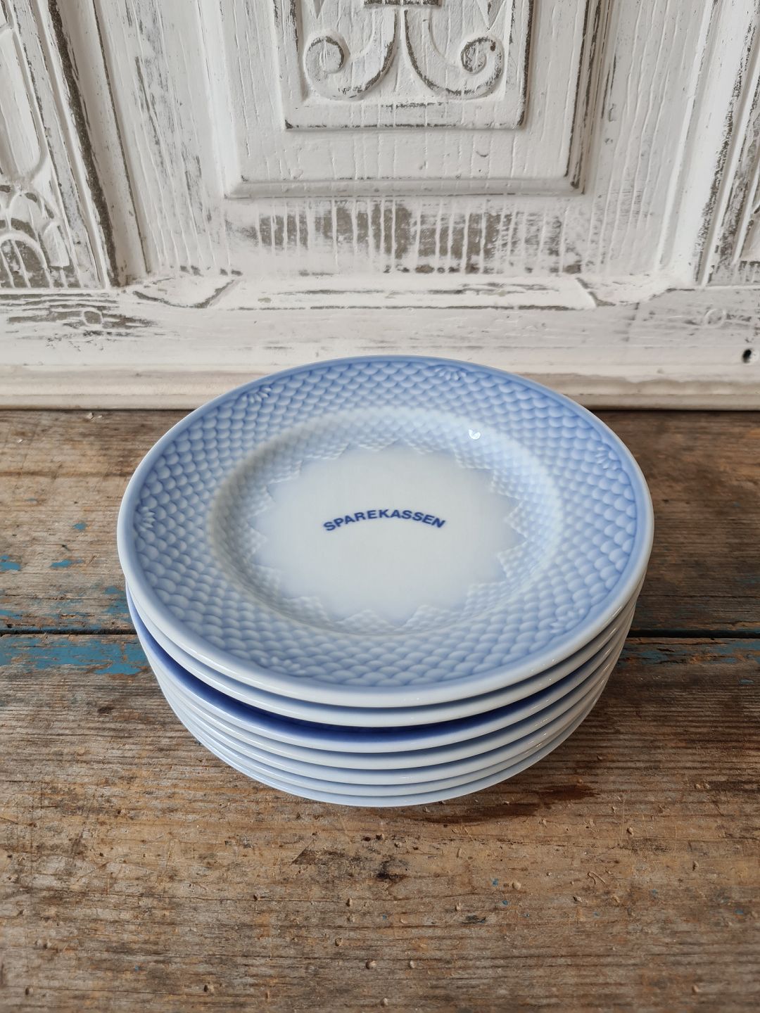 B&G Blå Tone kagetallerken med logo "Sparekassen"