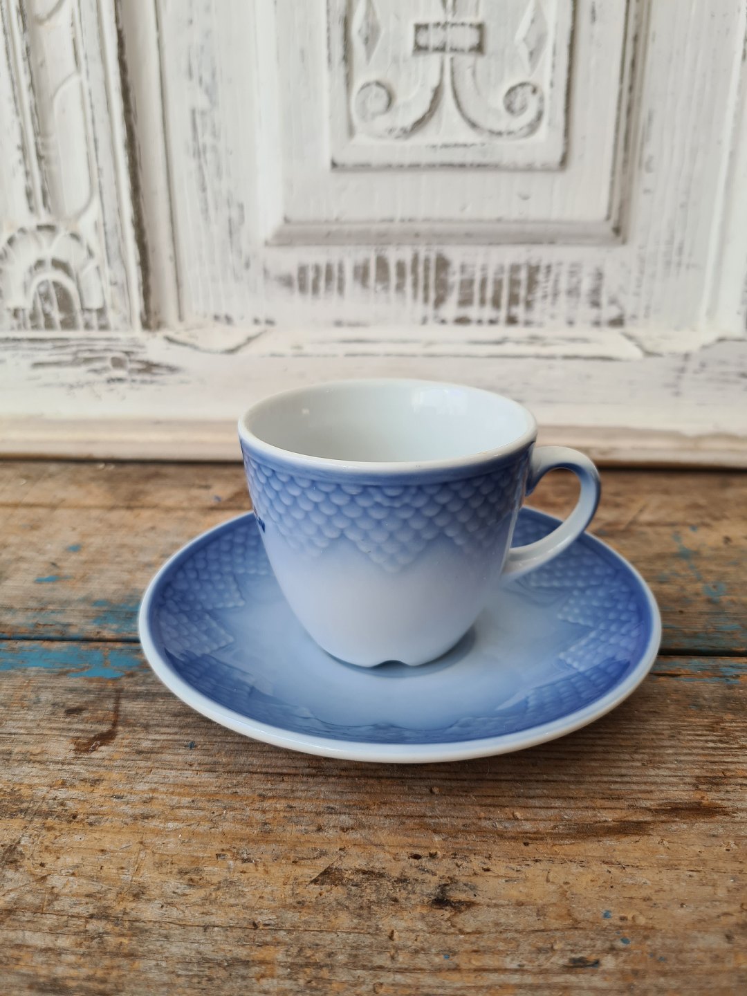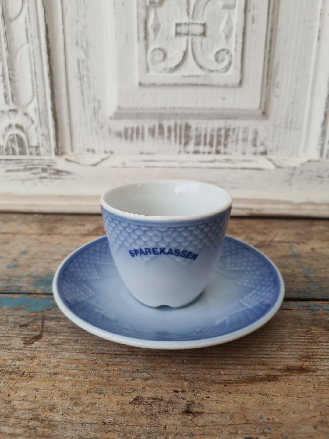B&G Blå Tone kaffekop med logo "Sparekassen"