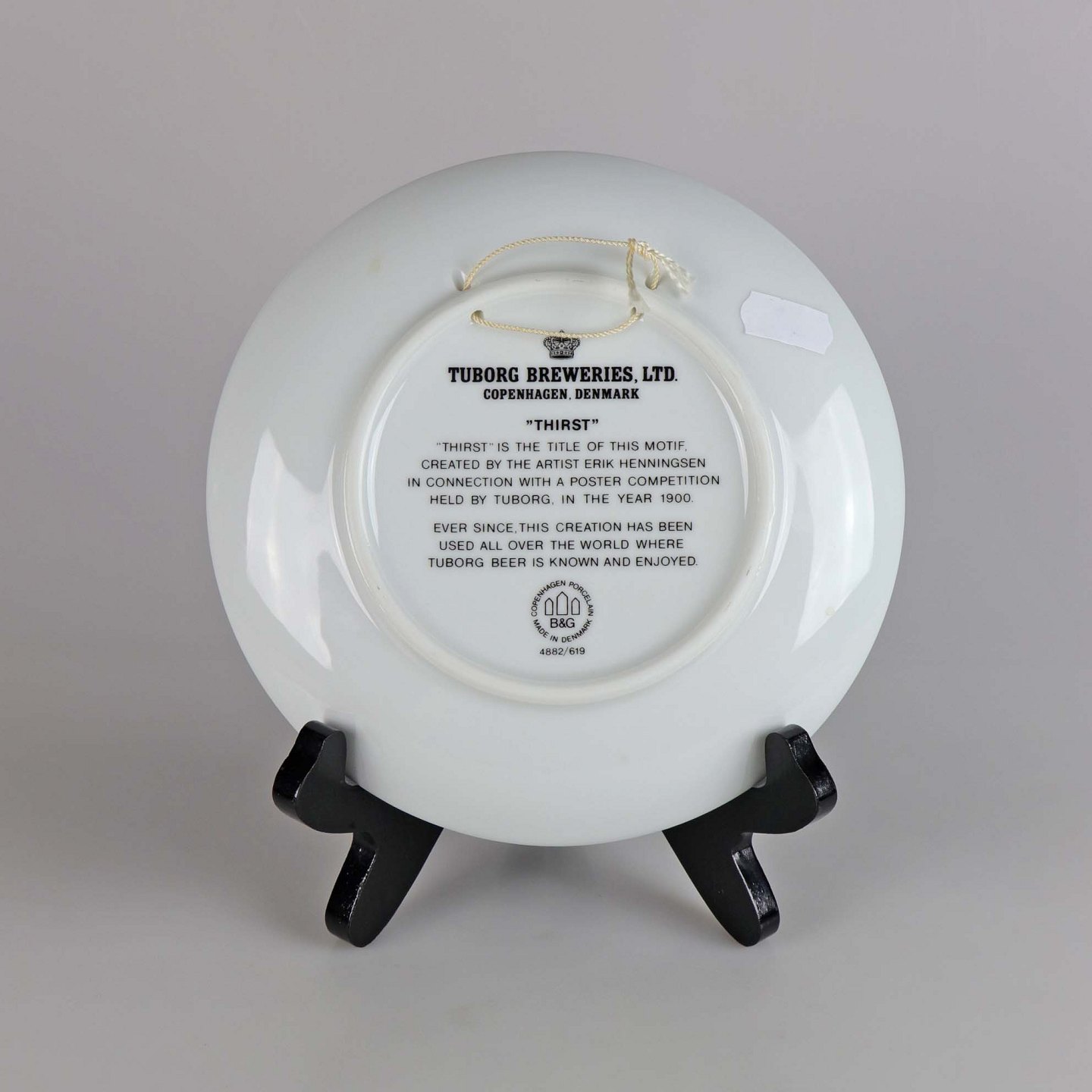 Platte af porcelæn med motiv af en tørstig mand. Derfor navnet Thirst