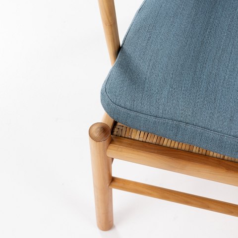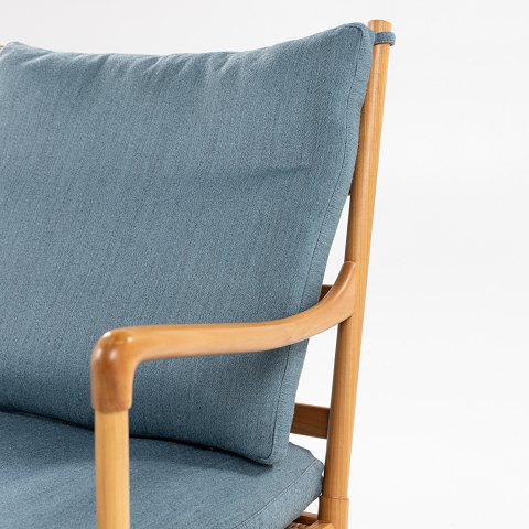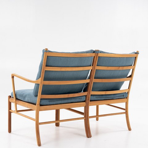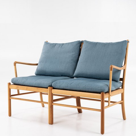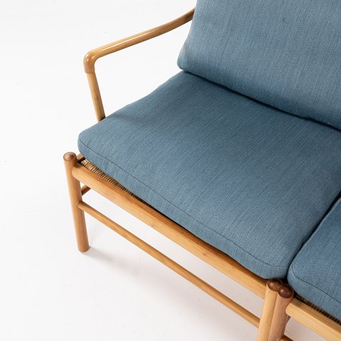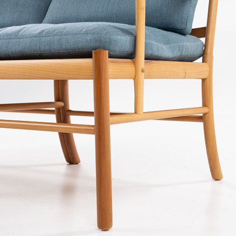 PJ 149/2 - 2 pers. 'Colonial' sofa i kirsebær, sædebund af sjeneflet og originale hynder af blå uld. Mærket fra producent.