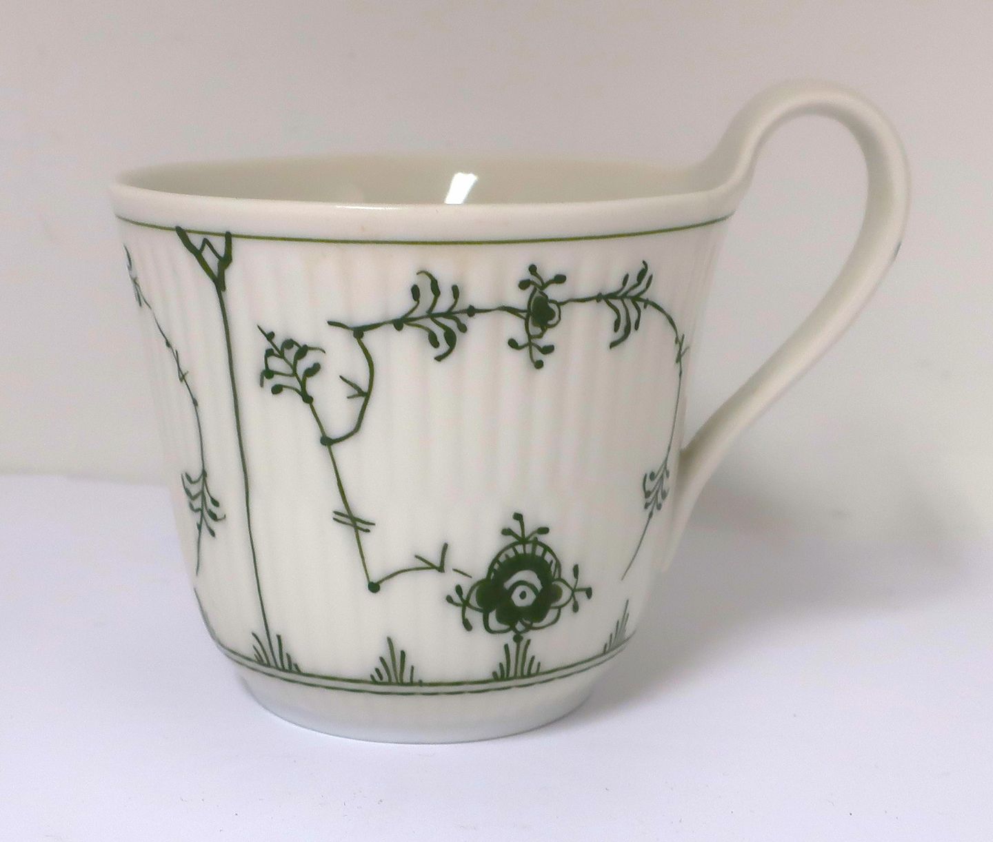 Royal Copenhagen. GREEN painted, plain. Morning cup with high handle. Model 093.