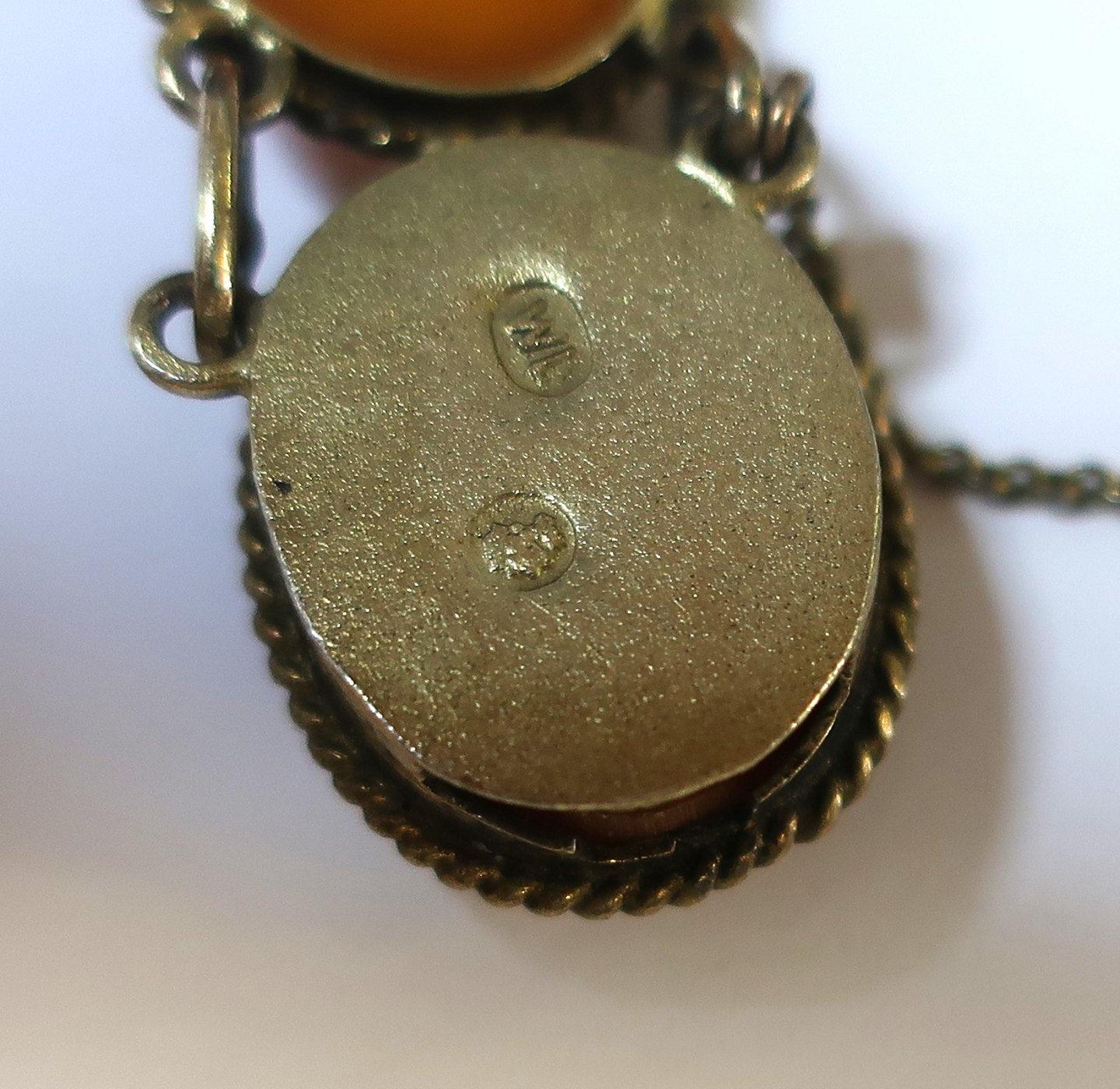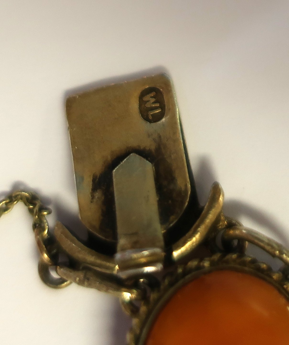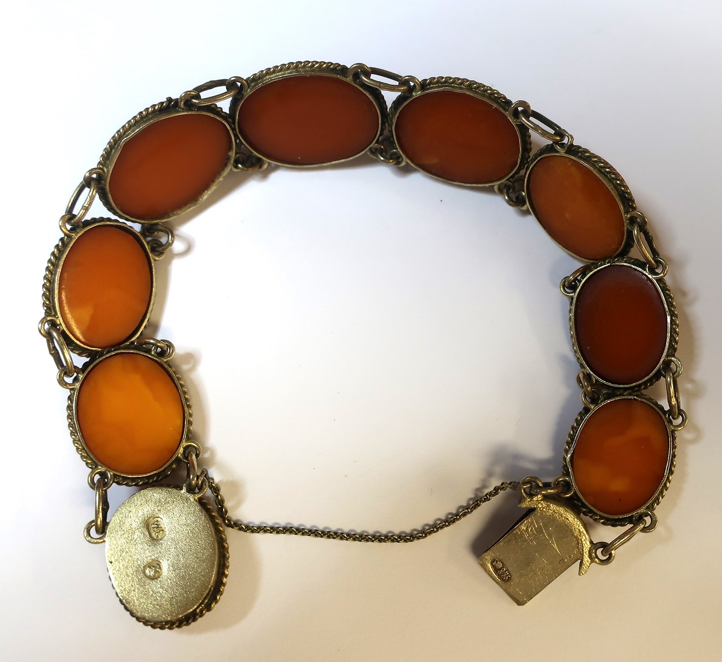 Letland. Stemplet WL. Forgyldt sølvarmbånd med rav. (875). Flere rav stykker har små afslag.