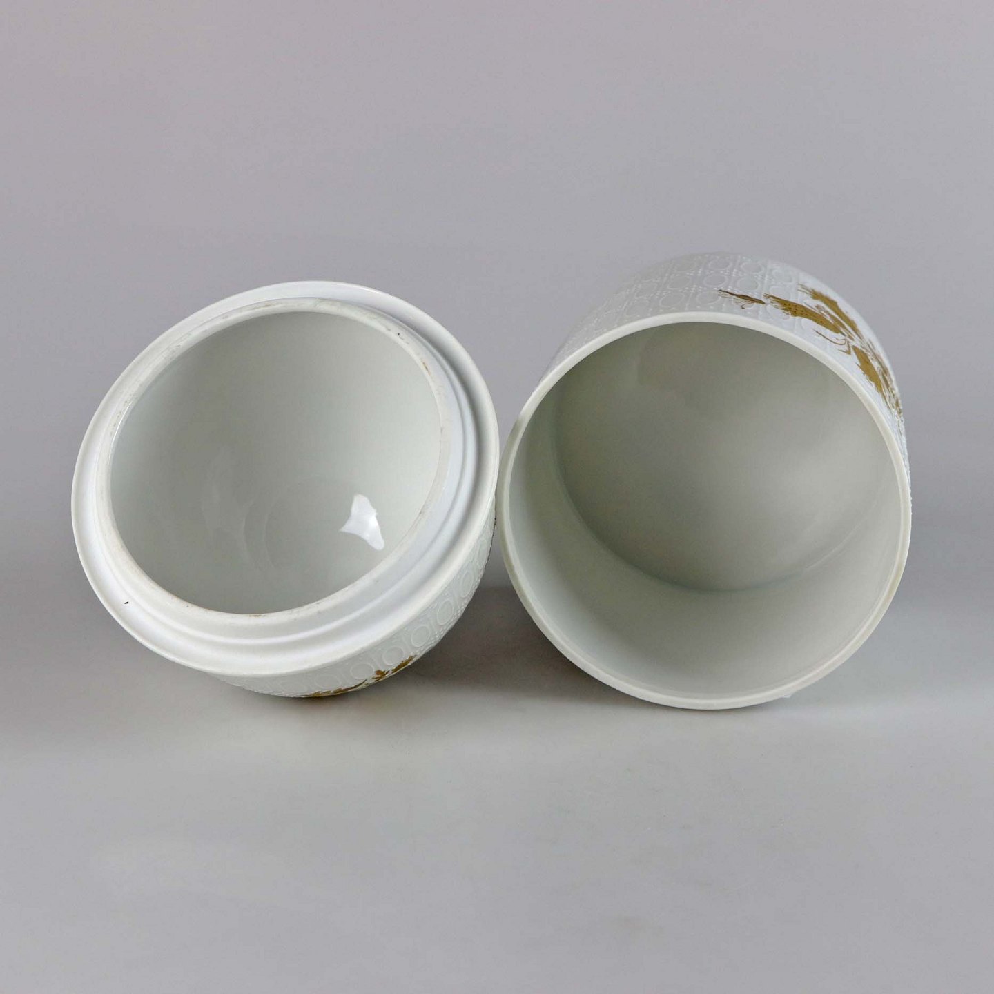 Hvidt struktureret porcelæn med flere gyldne motiver