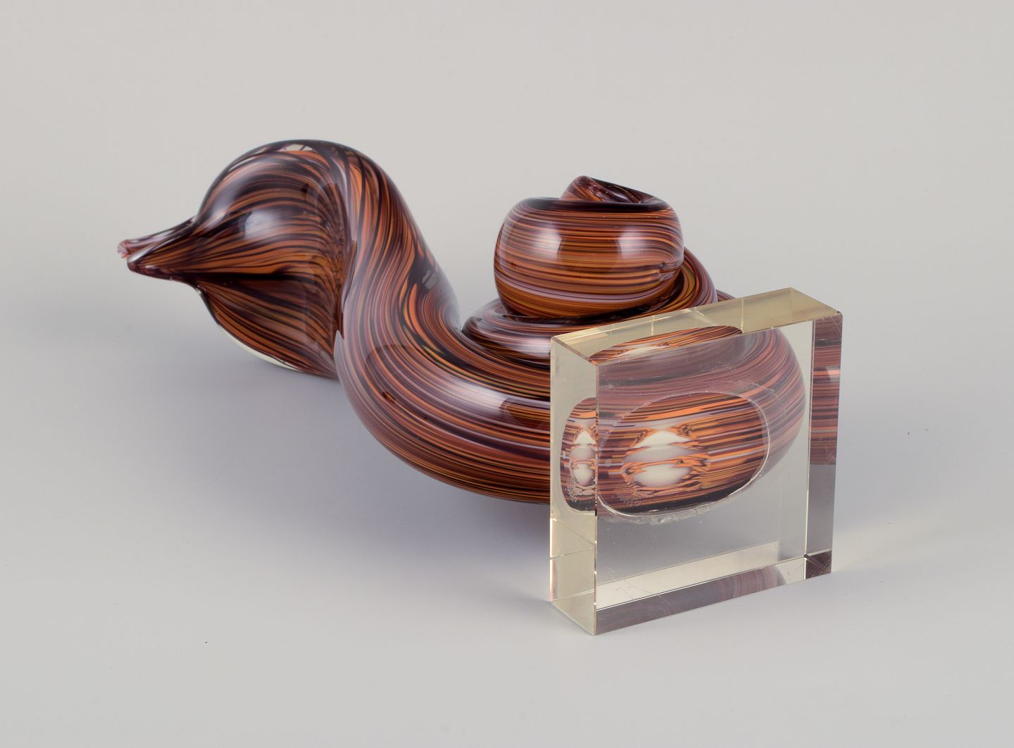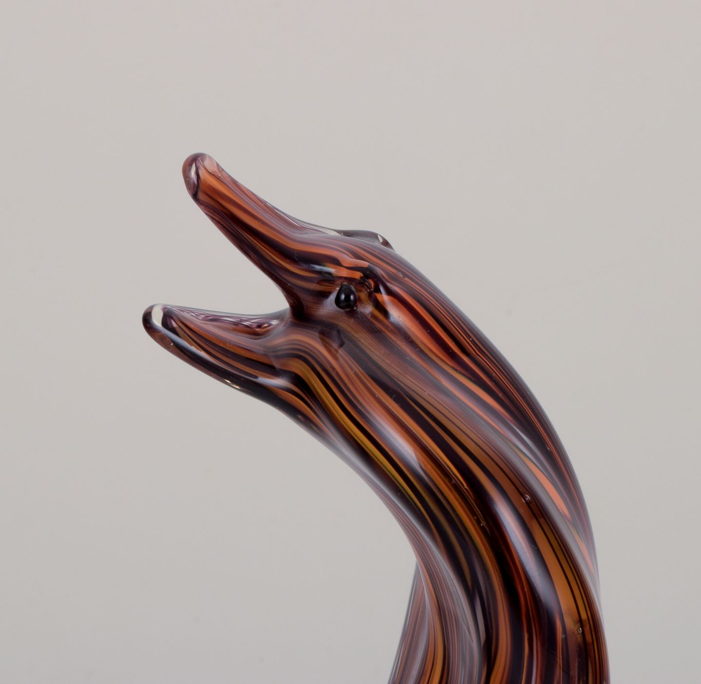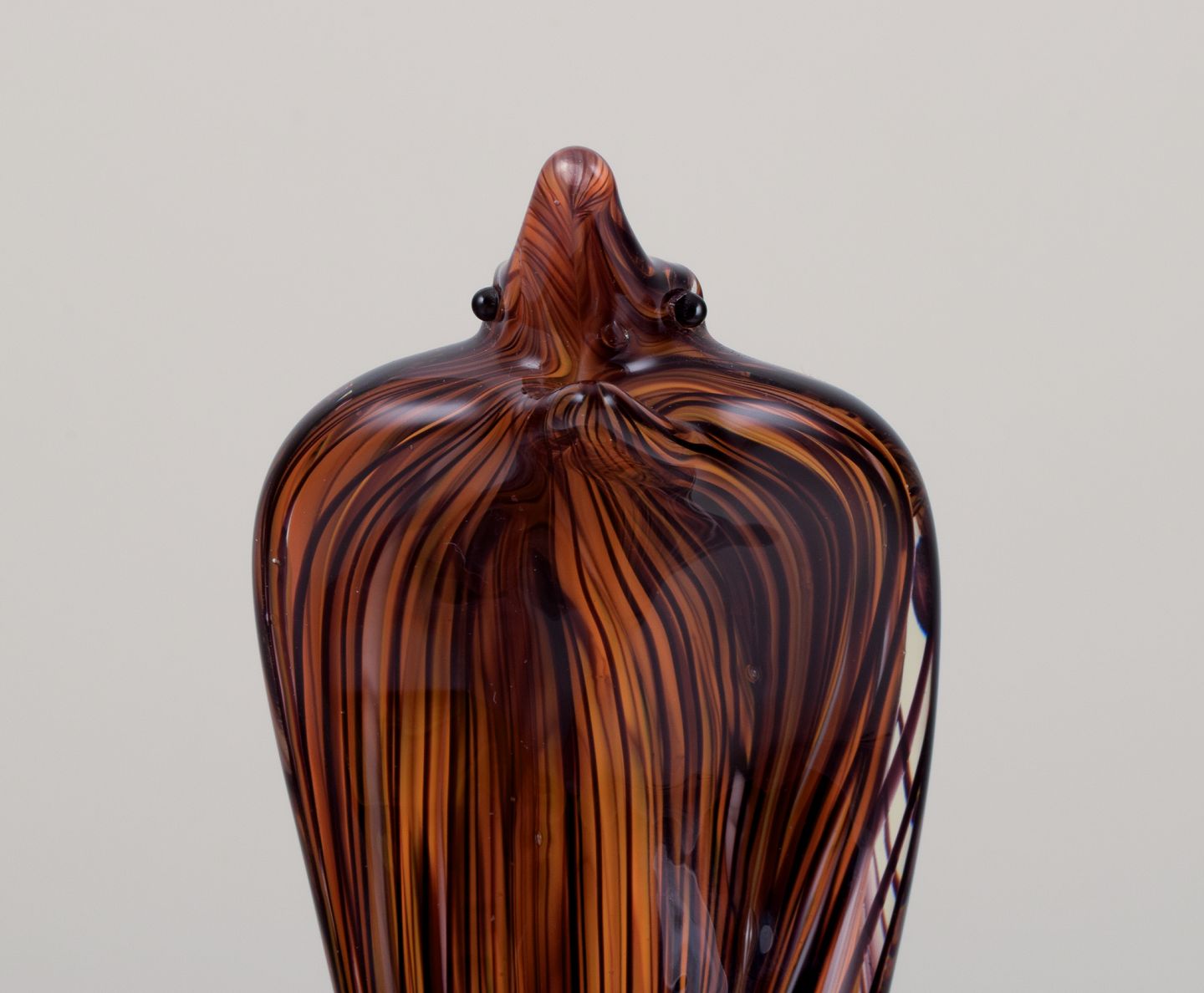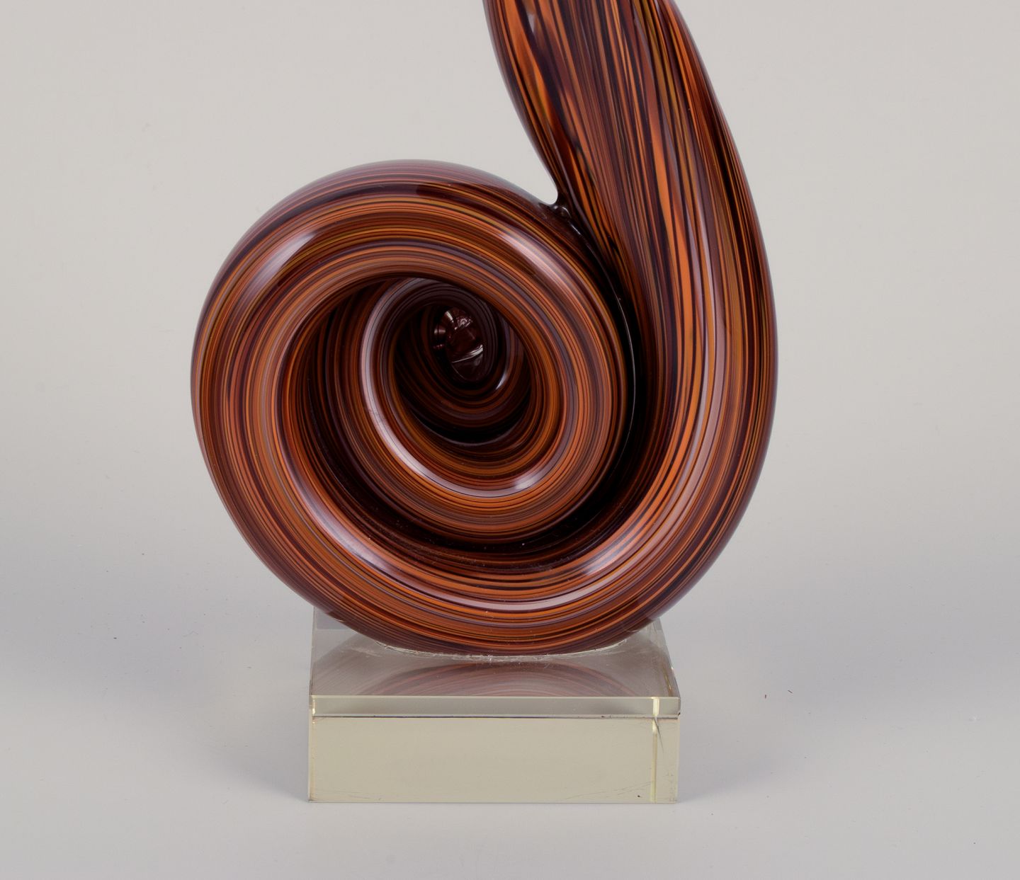 Murano, Italien. Stor skulptur forestillende kobraslange udført i kunstglas. Glas i brune og orange toner. På base af klart glas.