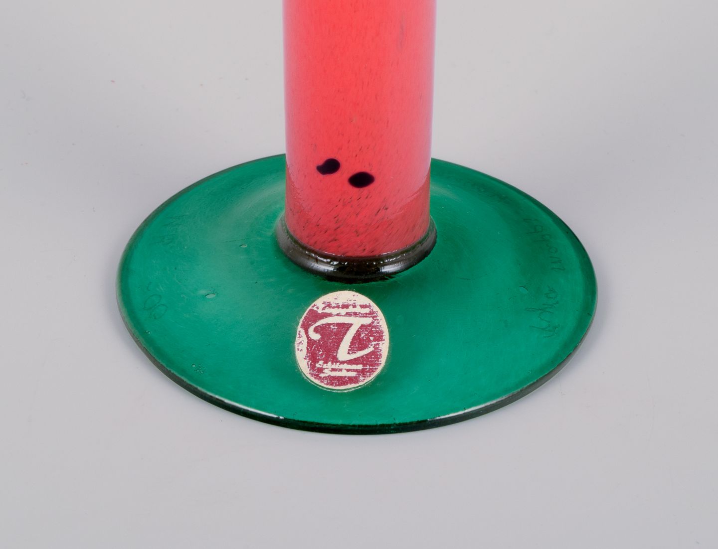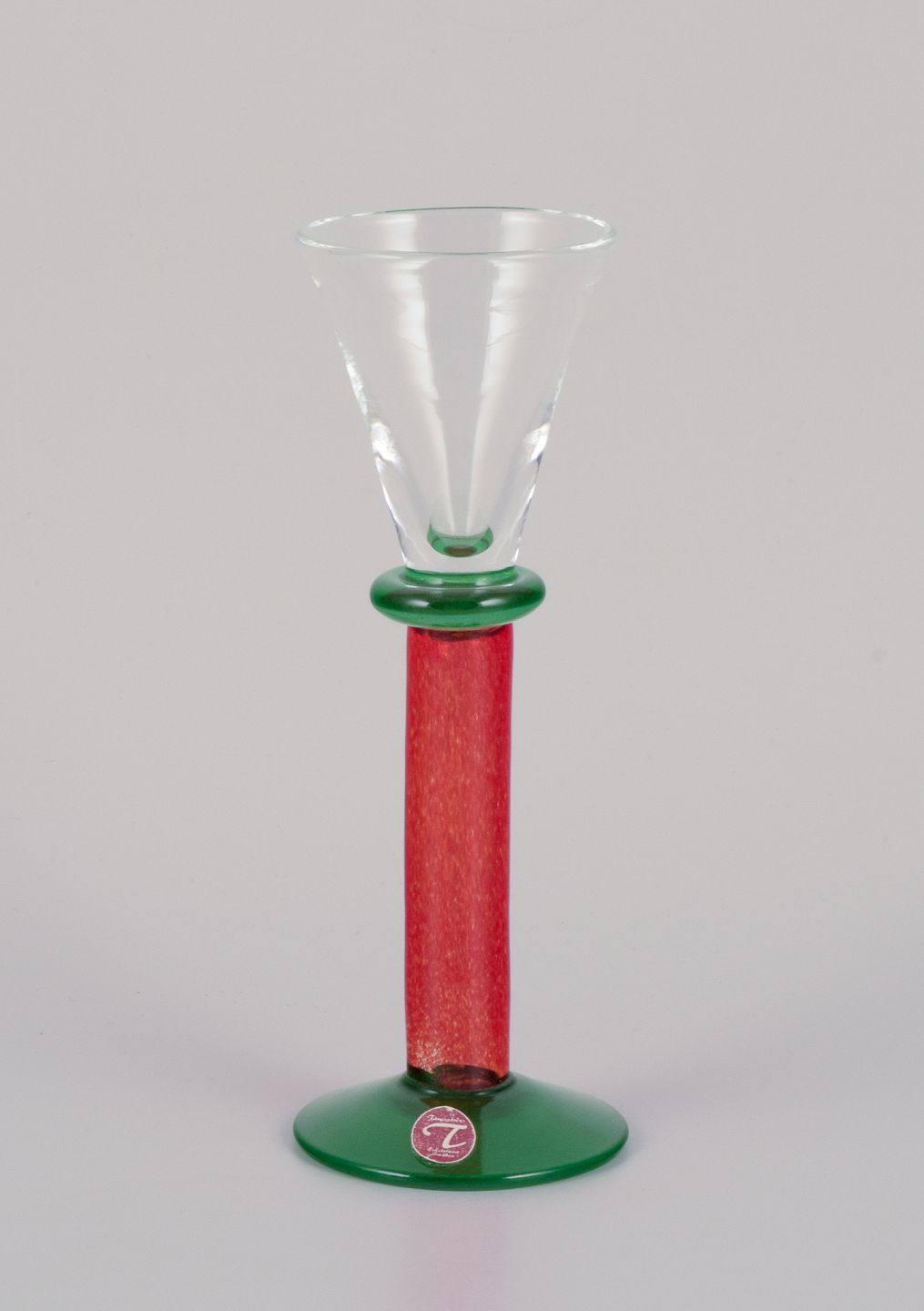 Margareta Hennix for Reijmyre, Sverige. Et sæt på fire snapseglas. Håndlavet og mundblæst kunstglas. Forskelligfarvet.