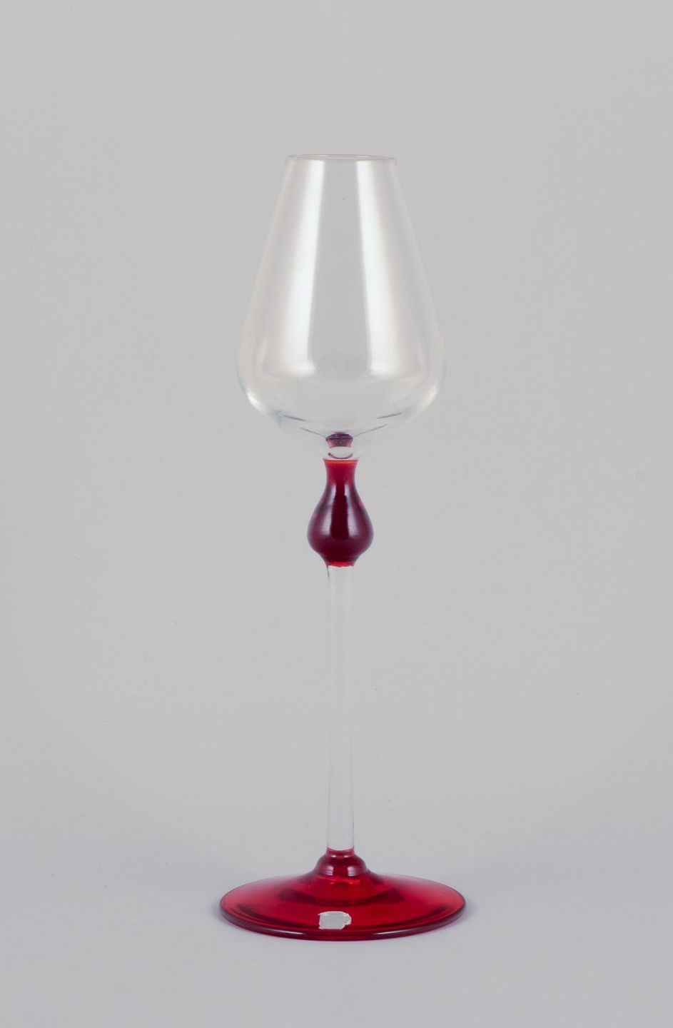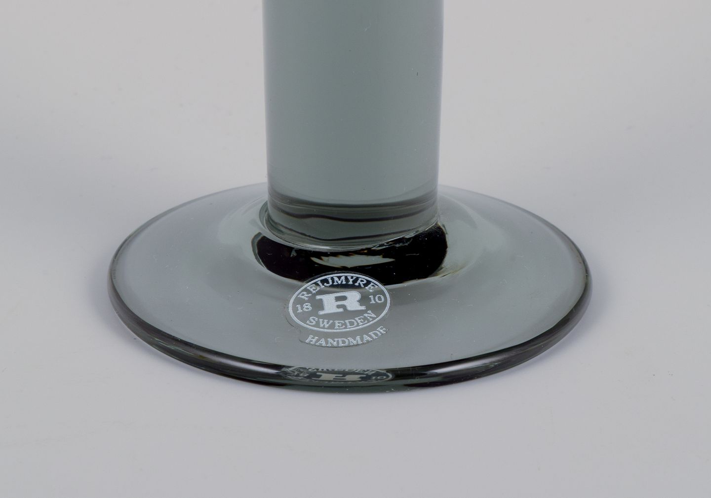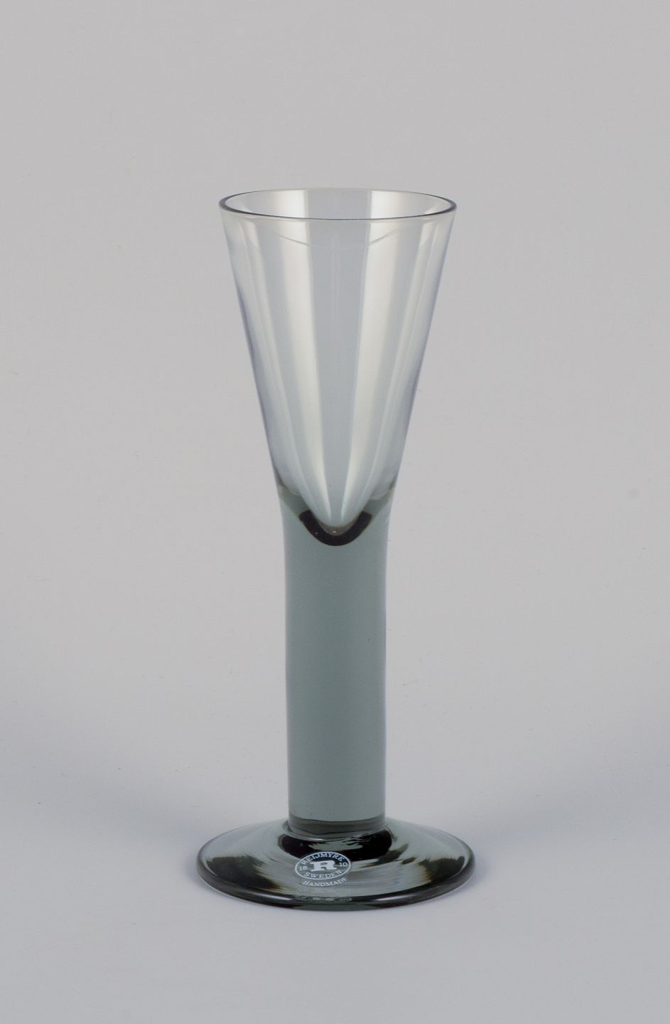 M. Hennix for Reijmyre, Sverige. Et sæt på tre snapseglas samt et højt og slankt likørglas. Håndlavet og mundblæst kunstglas. .