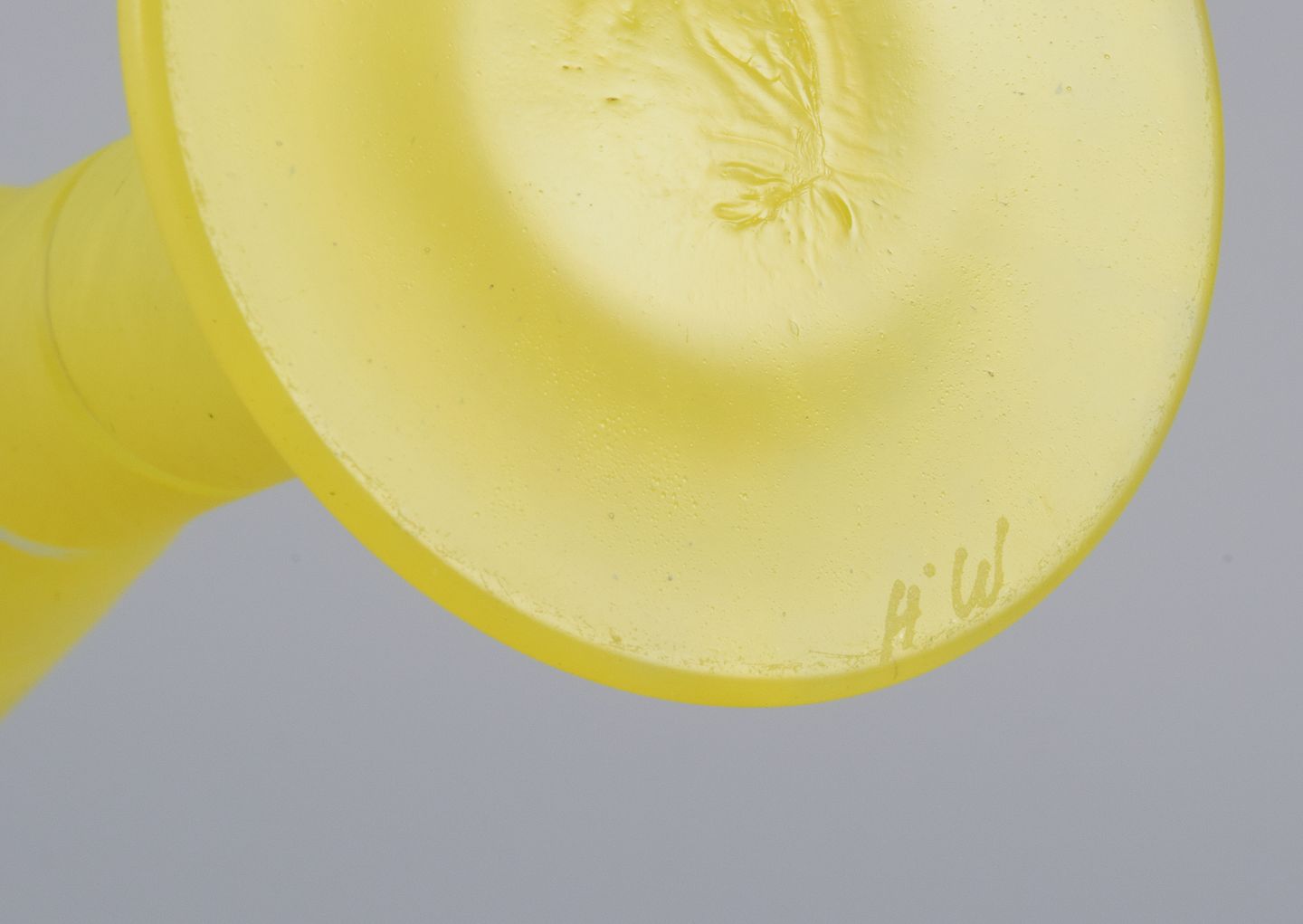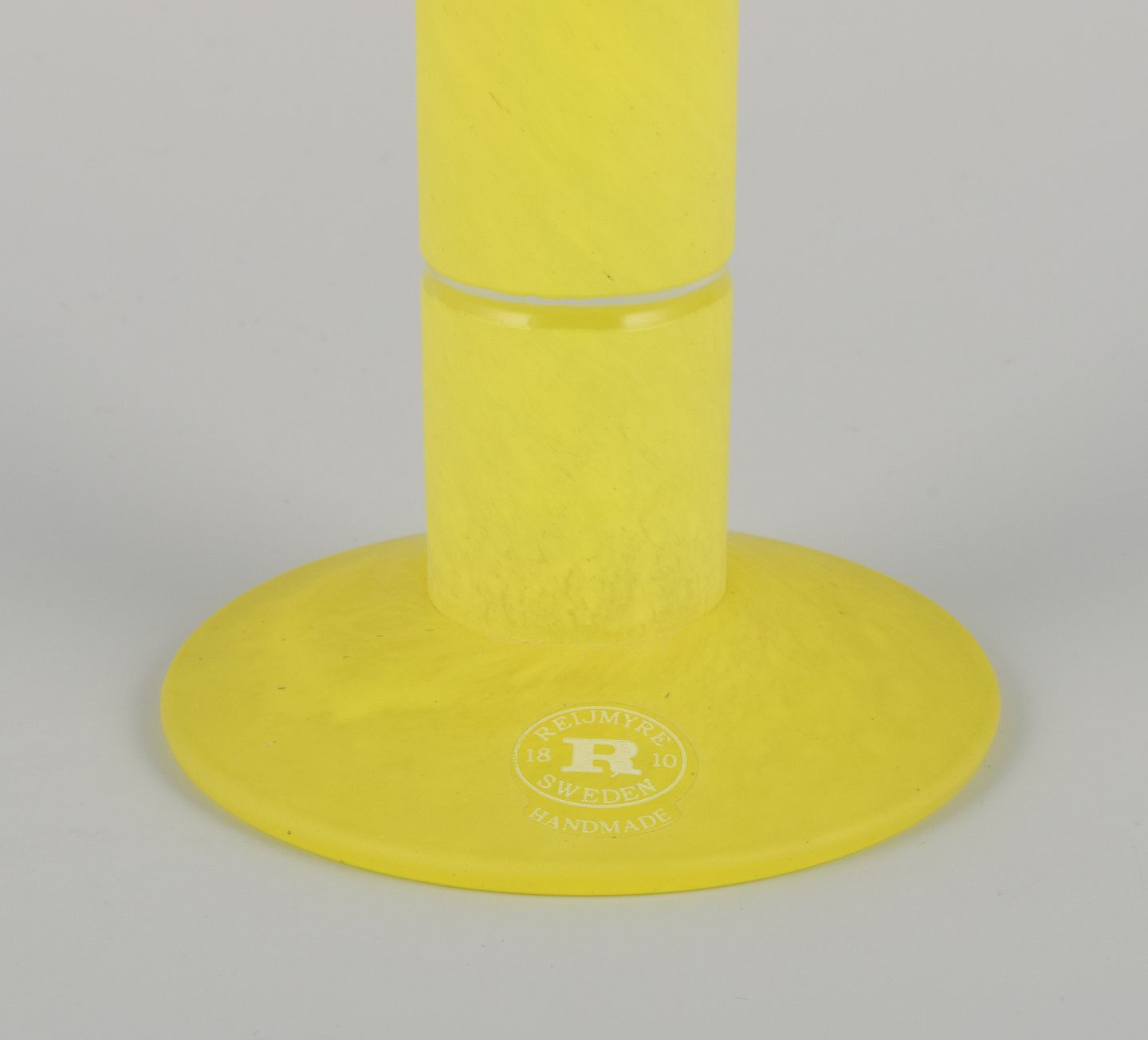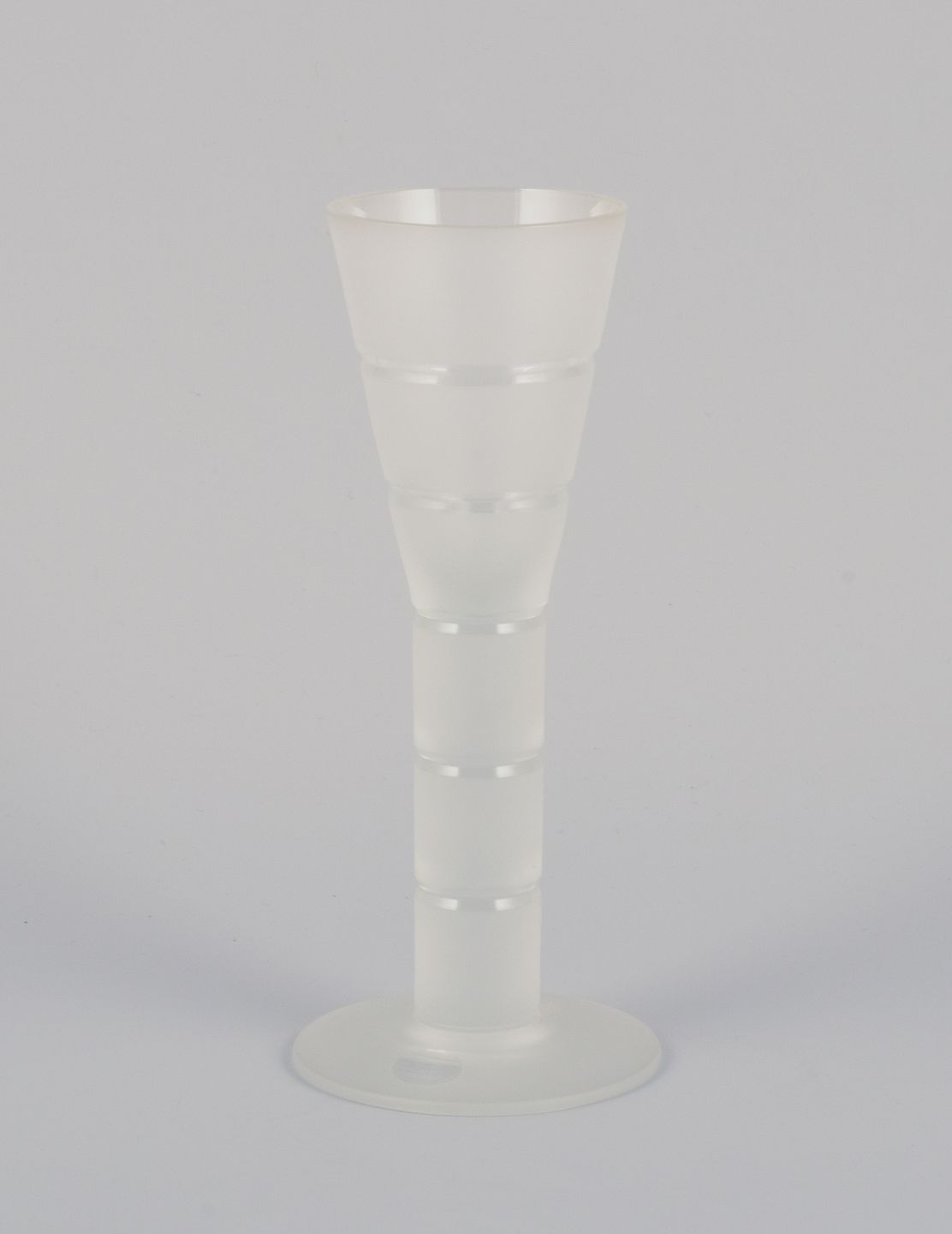 M. Hennix for Reijmyre, Sverige. Et sæt på tre snapseglas samt et højt og slankt likørglas. Håndlavet og mundblæst kunstglas. .