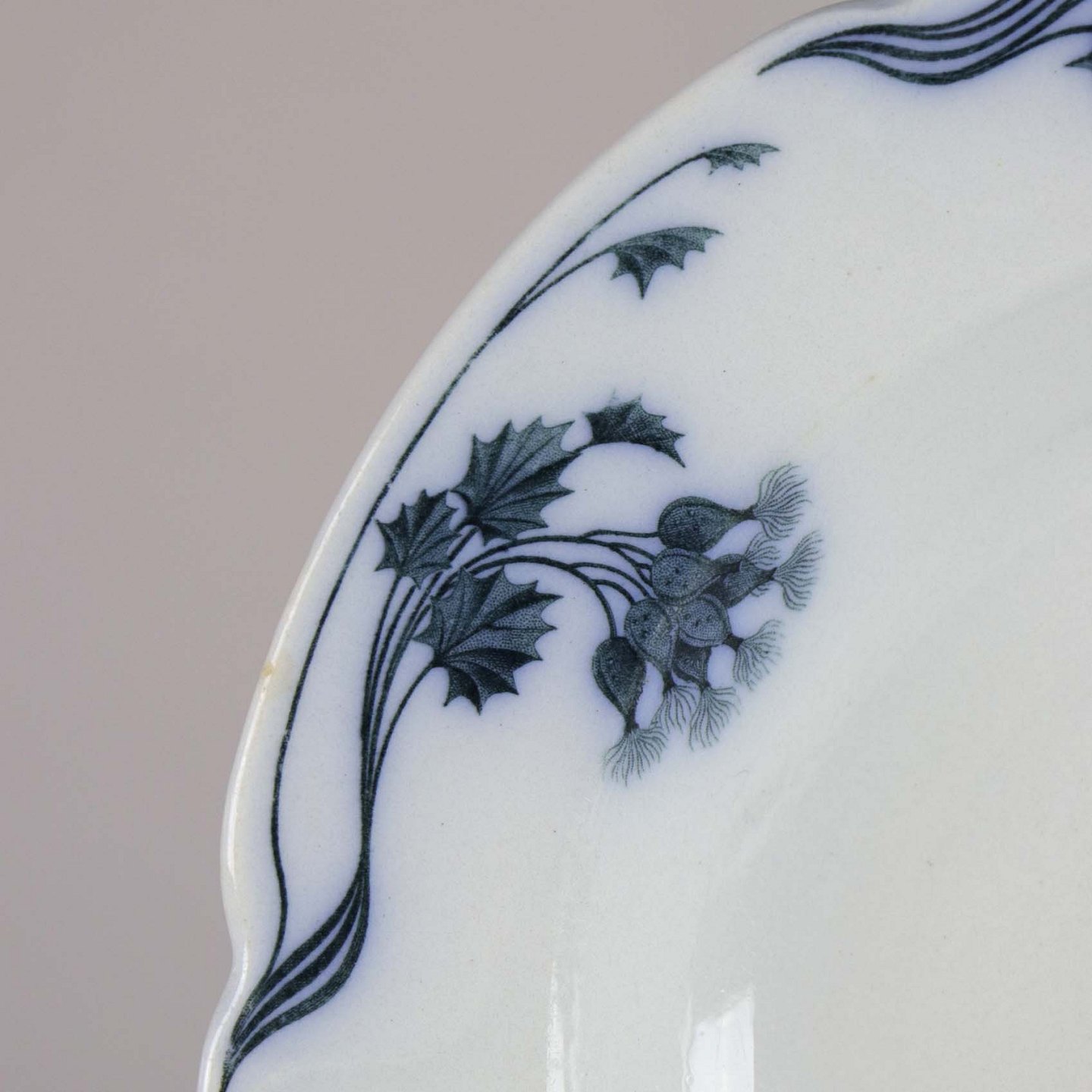 Dyb tallerken i fajance fra stellet Tidsel. Det tyske navn er Milla