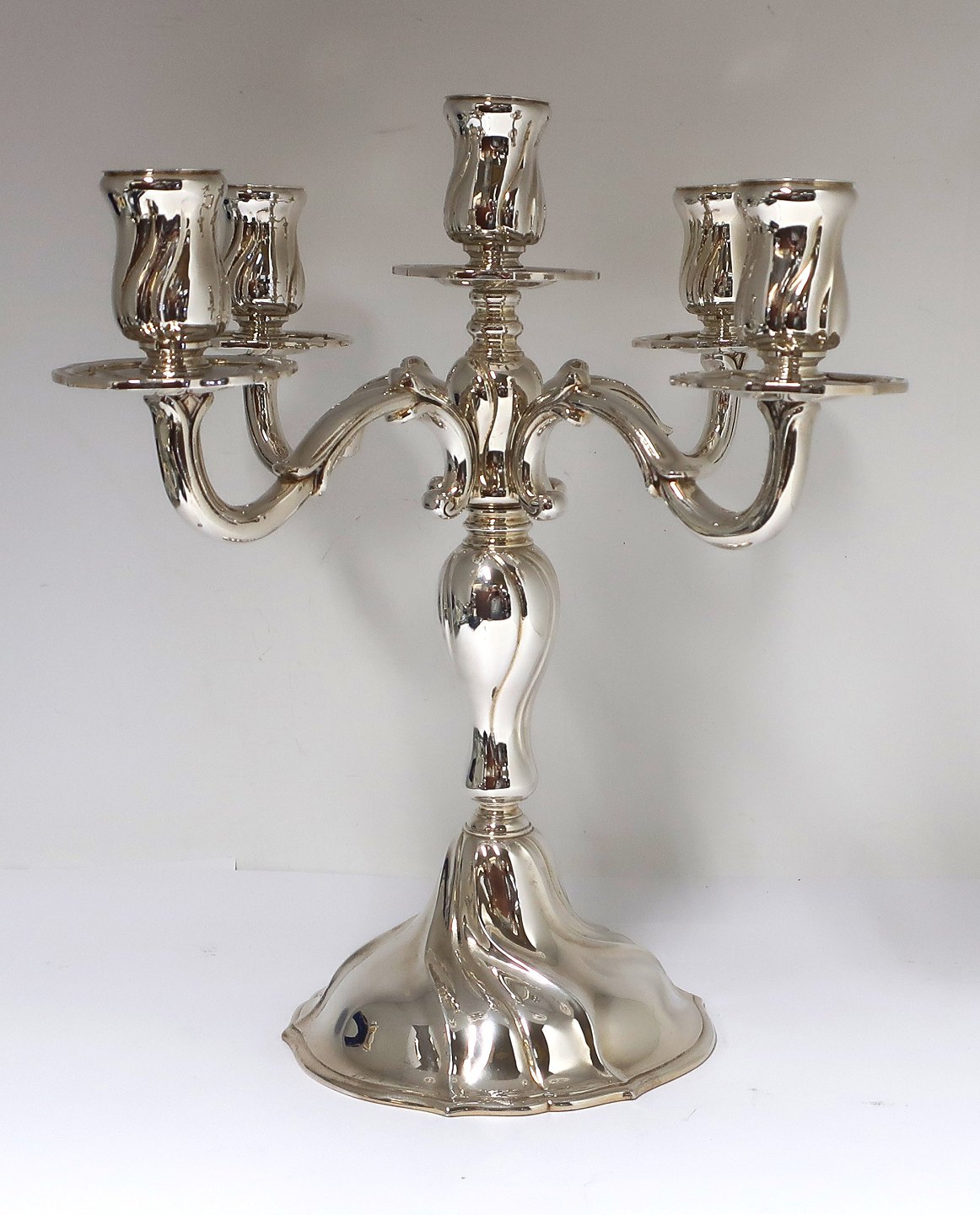 Preben Salomonsen, København. 5-armede sølvlysestager (925). Et par. Højde 29 cm.
