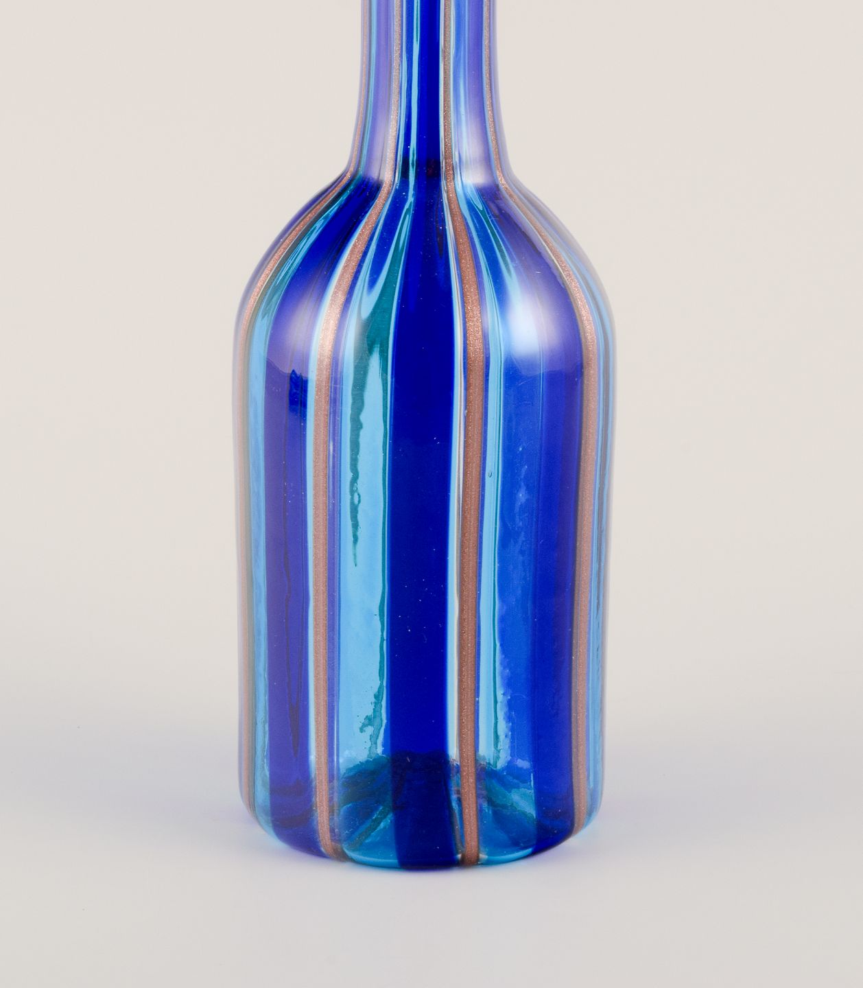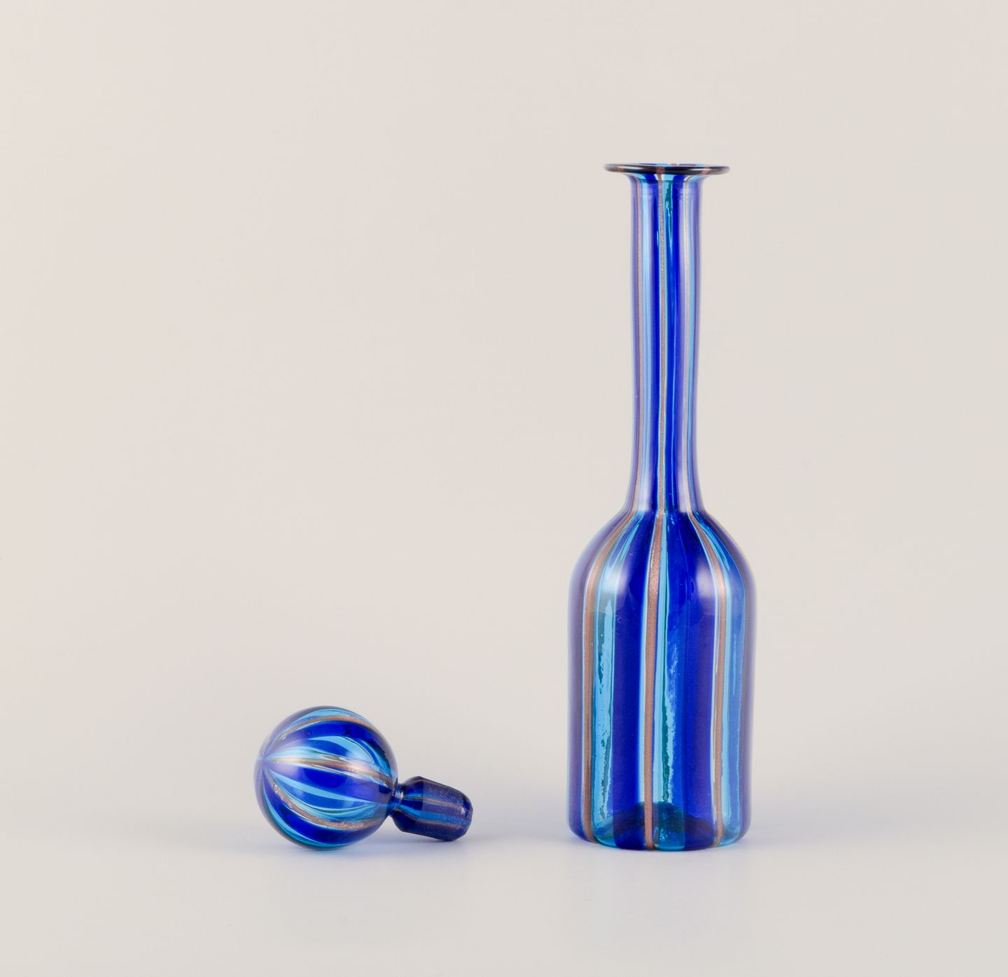 Murano, Italien. Karaffel i kunstglas med stribet design.