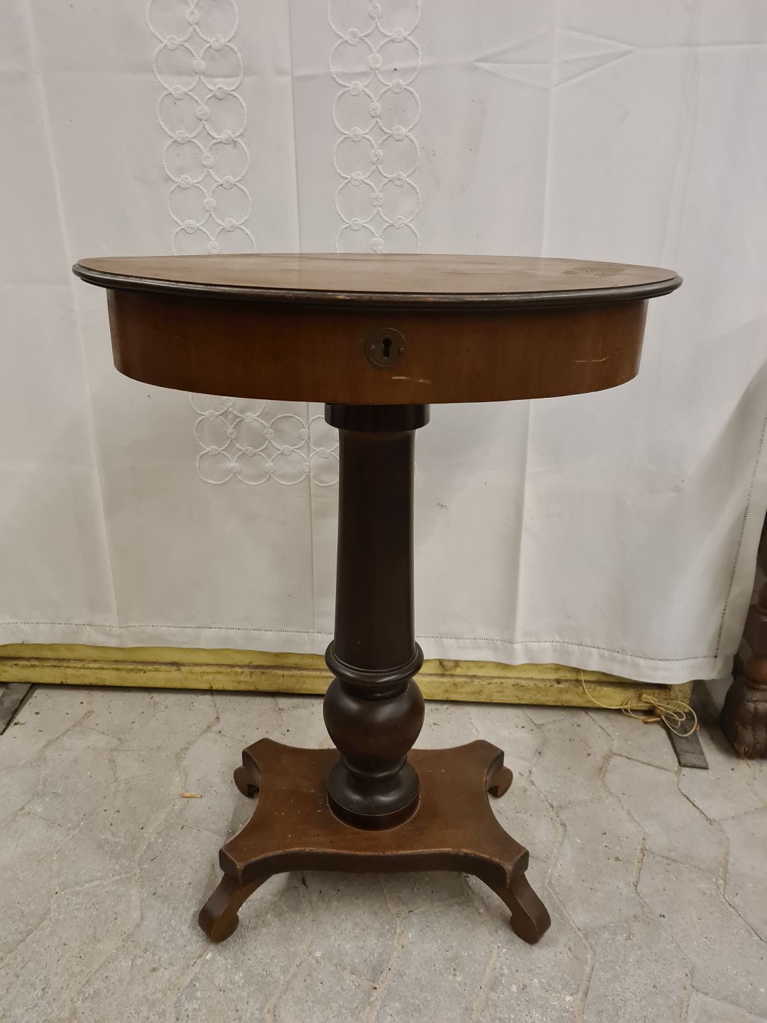 Sybord i fineret mahogni og bøgetræ, fra 1900erne.