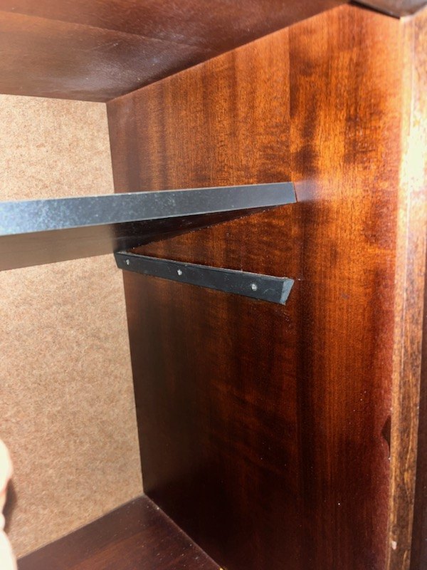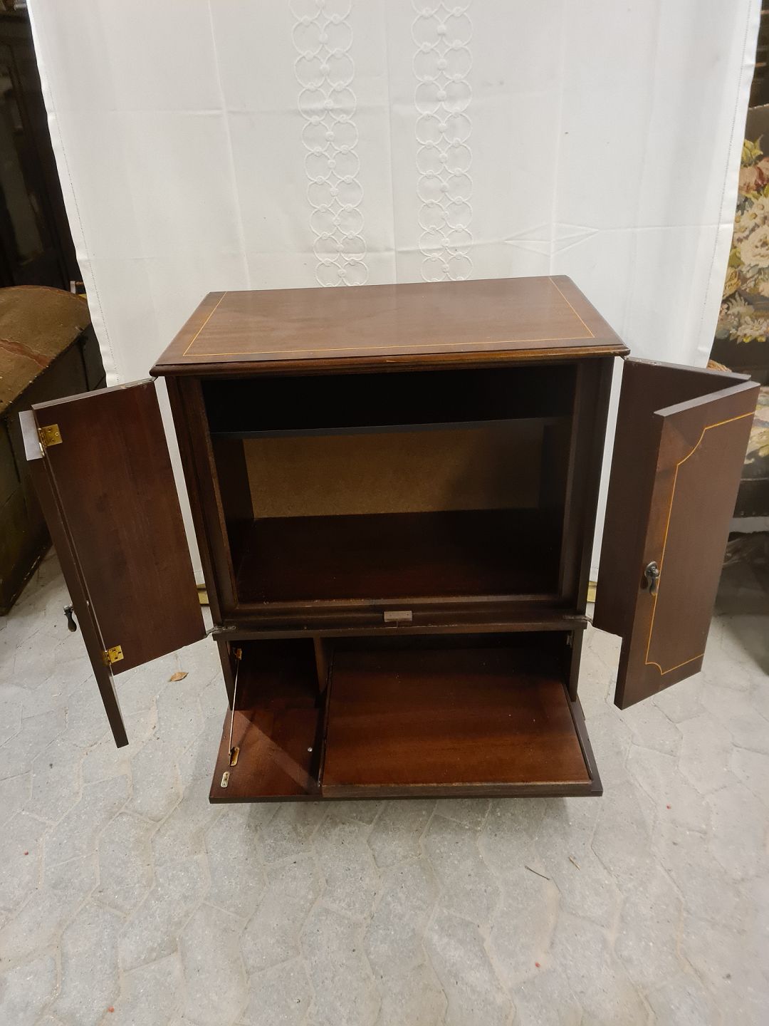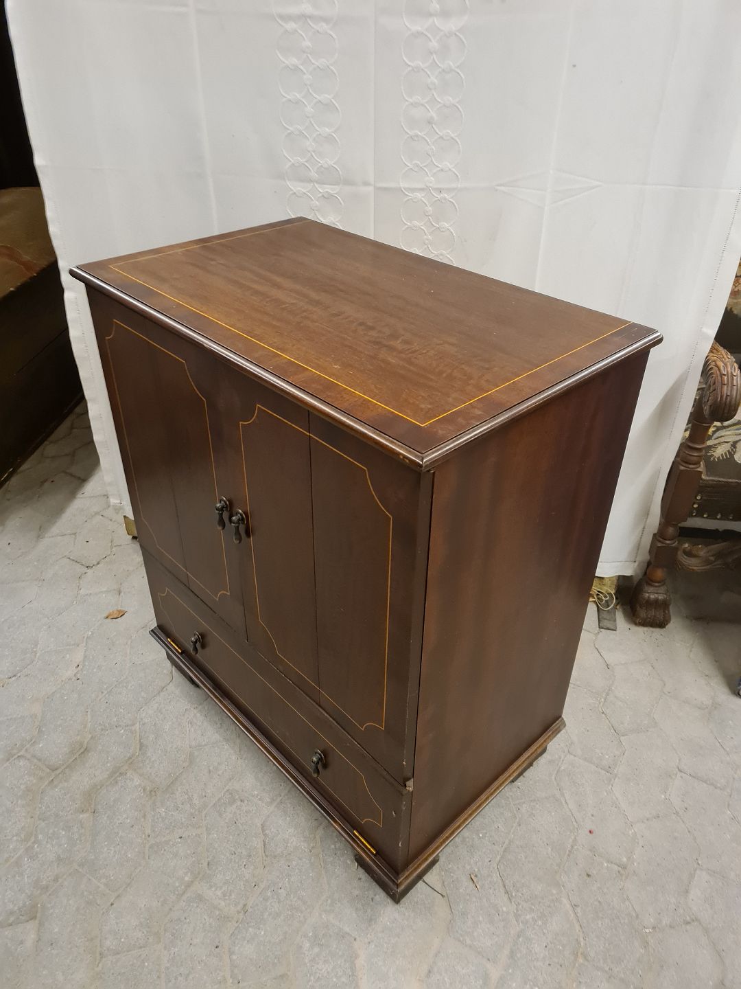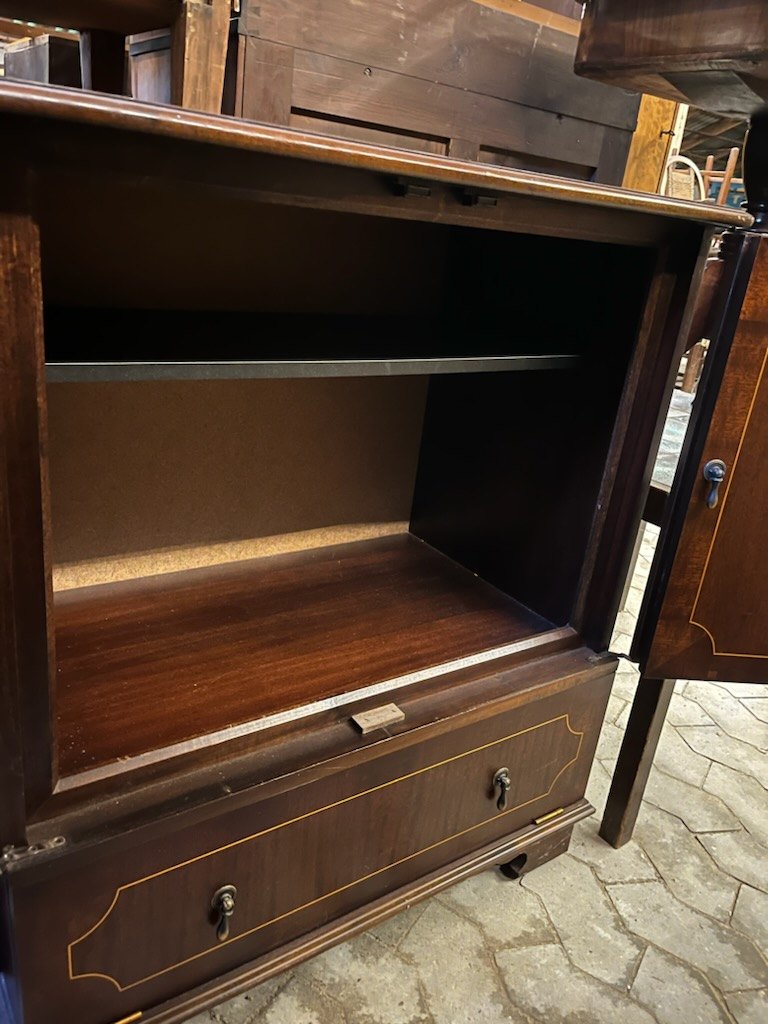 Skab i fineret mahogni, fra 1980erne.