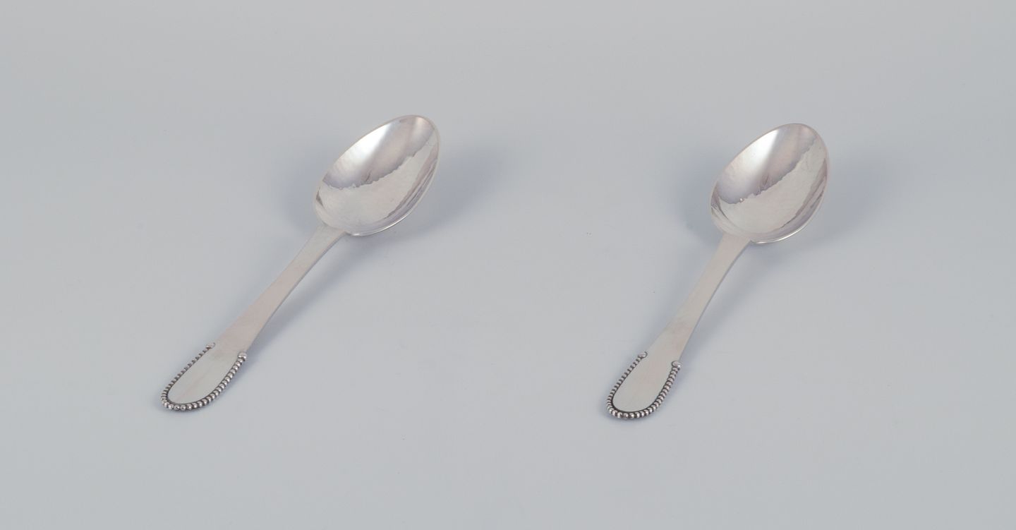 Georg Jensen. To Kugle spiseskeer i tretårnet sølv.