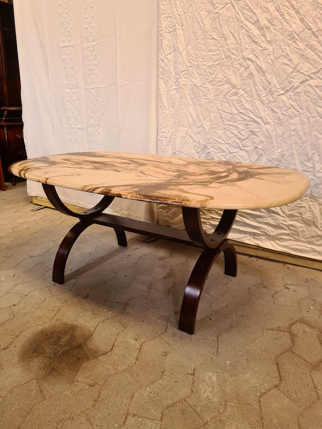 Sofabord i bejdset bøgetræ med bordplade i støbt stenmasse, fra 1990erne.
