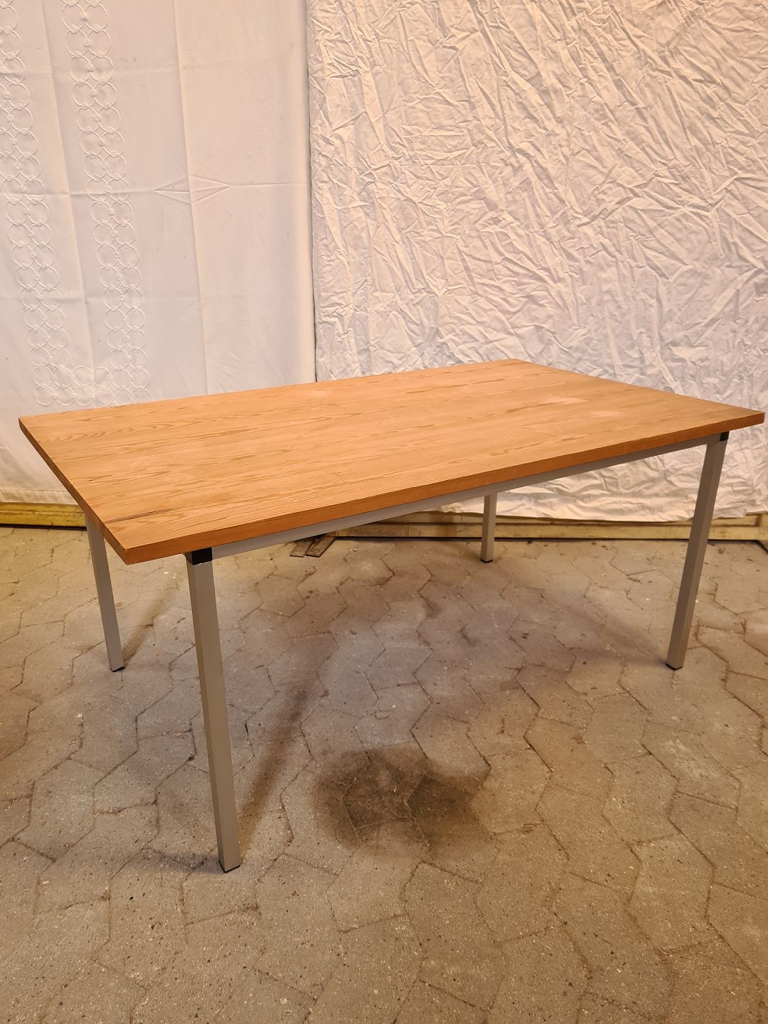 Sofabord i massivt fyrretræ med metal understel, fra 1980erne.