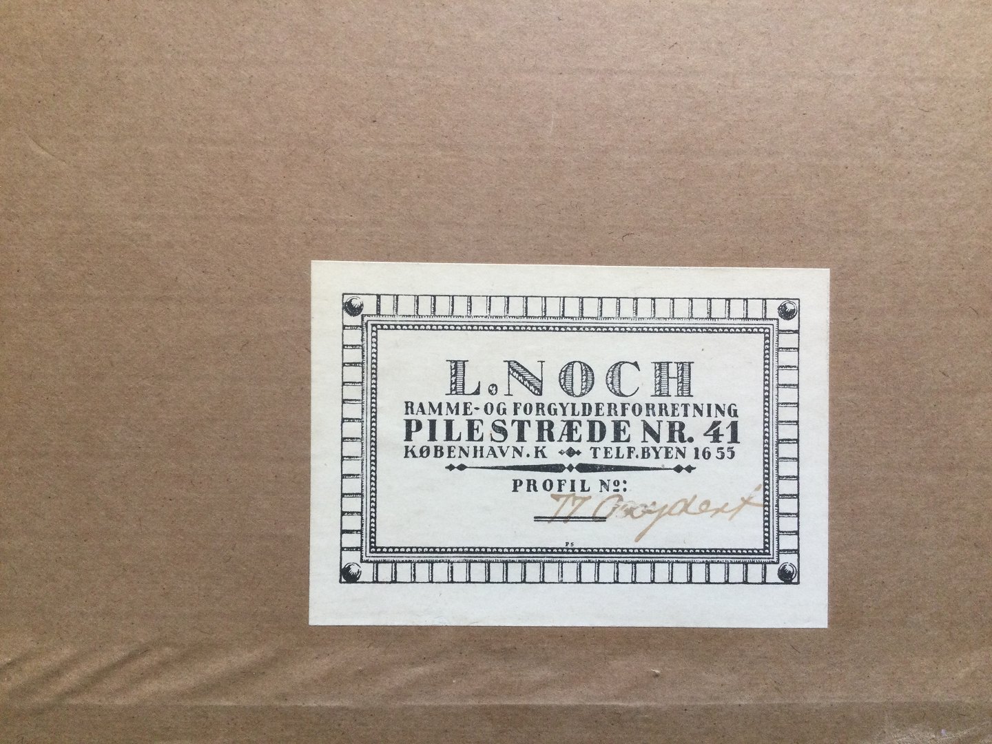 Indrammet i smuk guldramme med tandsnit hos L. Noch i Pilestræde i København.