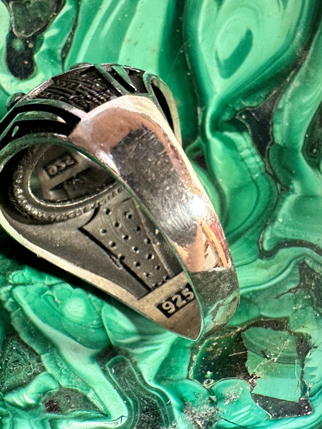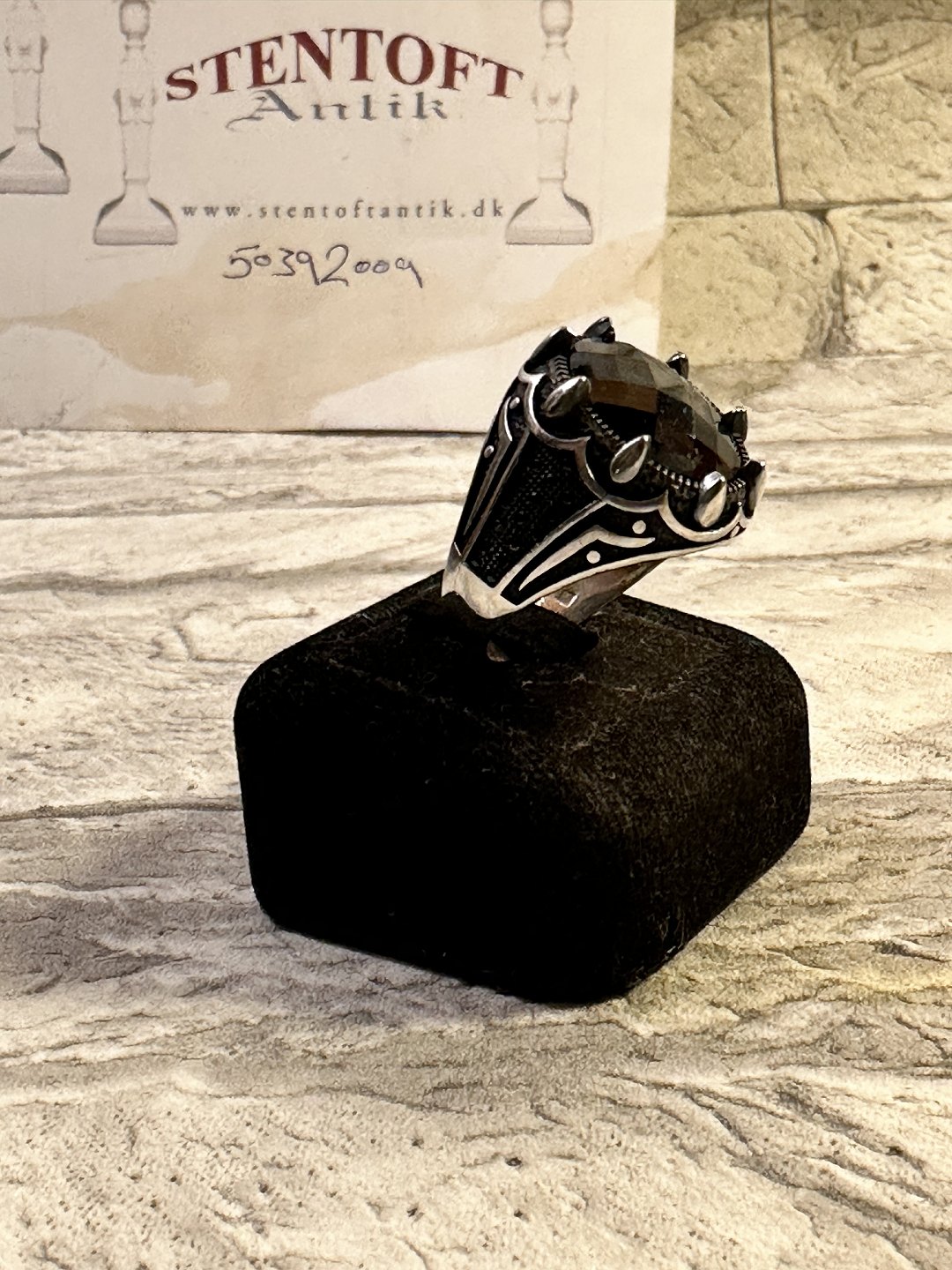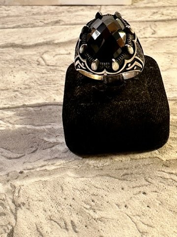 Store unik sølv ringe ,store sort sten , 12 små sten på Bagge siden .
